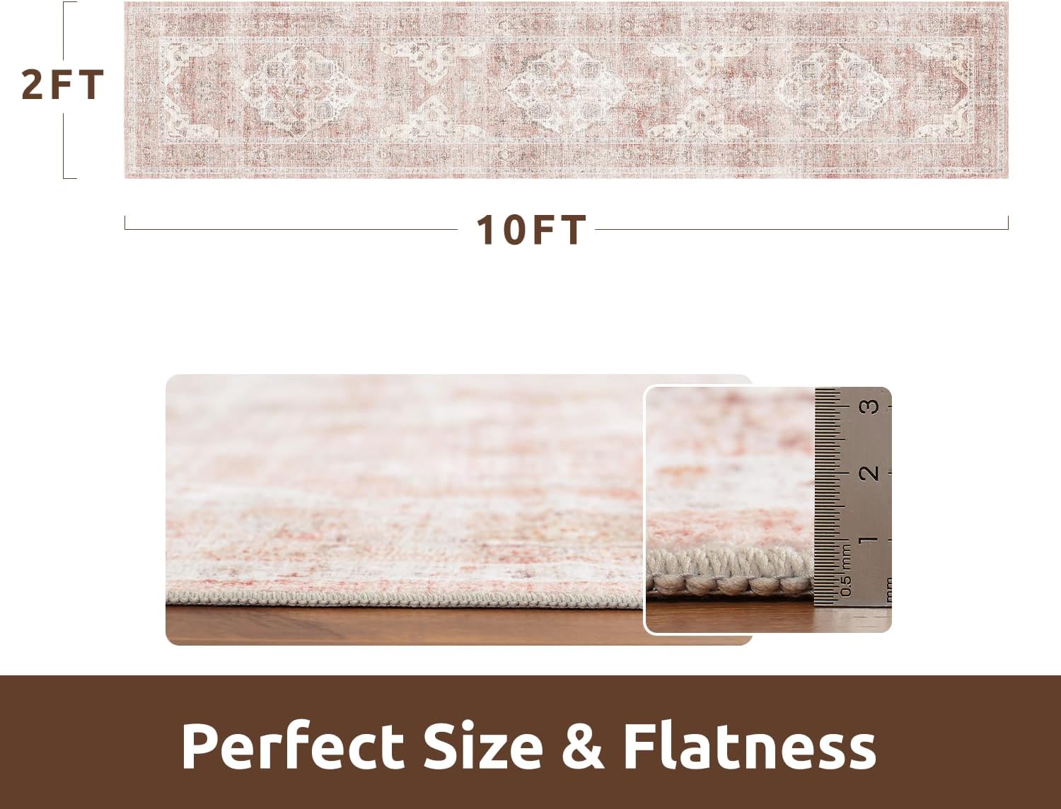 AMOAMI-2X10 Runner Rug-Washable Runners for Hallways-Soft Non Slip Bedside Rugs for Bedroom-Vintage Long Rug for Hallways Entryway Laundry Room Stair Kitchen Bathroom Pink