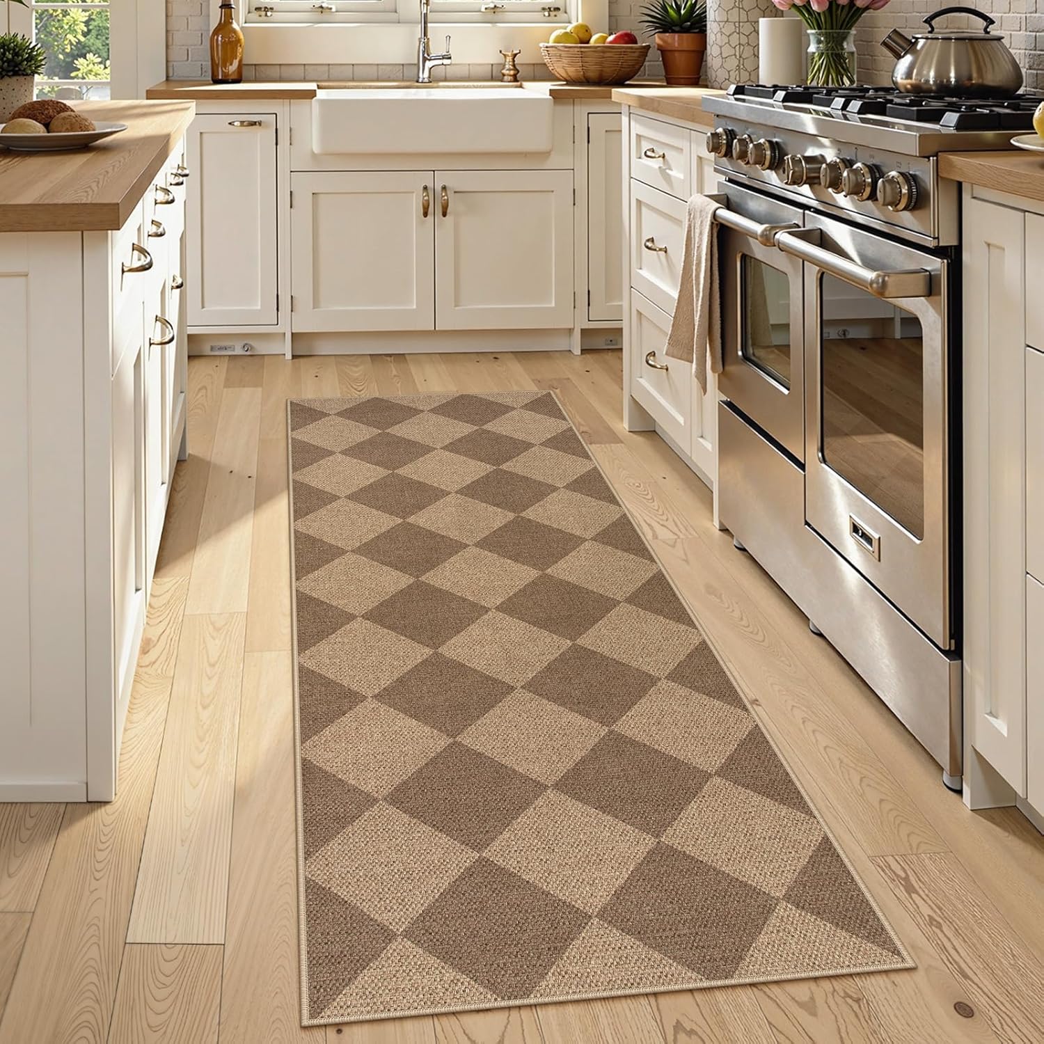 Lahome Checkered Easy Jute Runner Rug, 2x6 Kitchen Mats for Floor Non Slip Washable Entryway Runner, Checkerboard Nature Indoor Outdoor Carpet for Hallway 6ft Entry