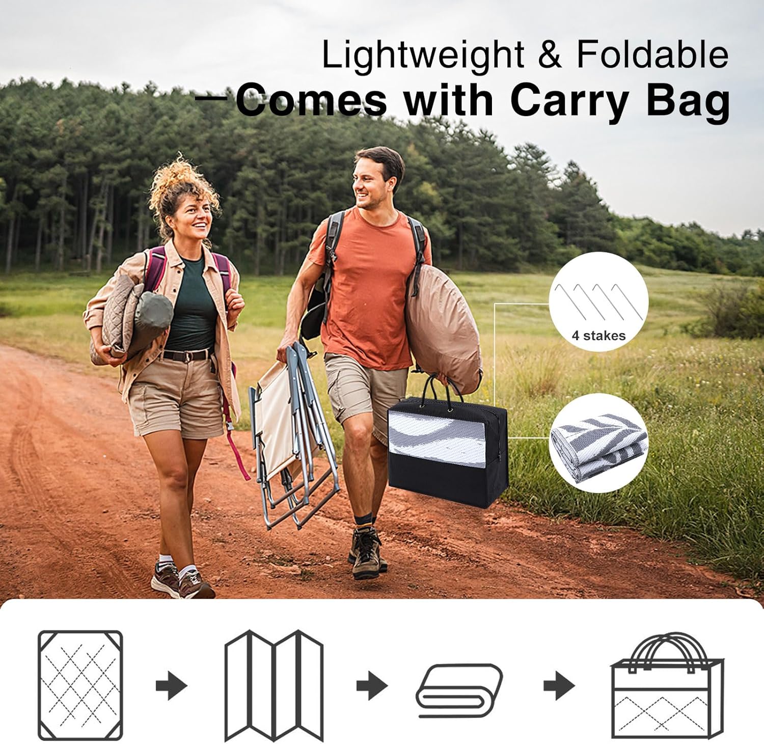 - Portable & Convenient: Lightweight and foldable, our waterproof rugs are easy to transport and store, making them ideal for travel and camping. They even come with a matching carry case for effortless portability.