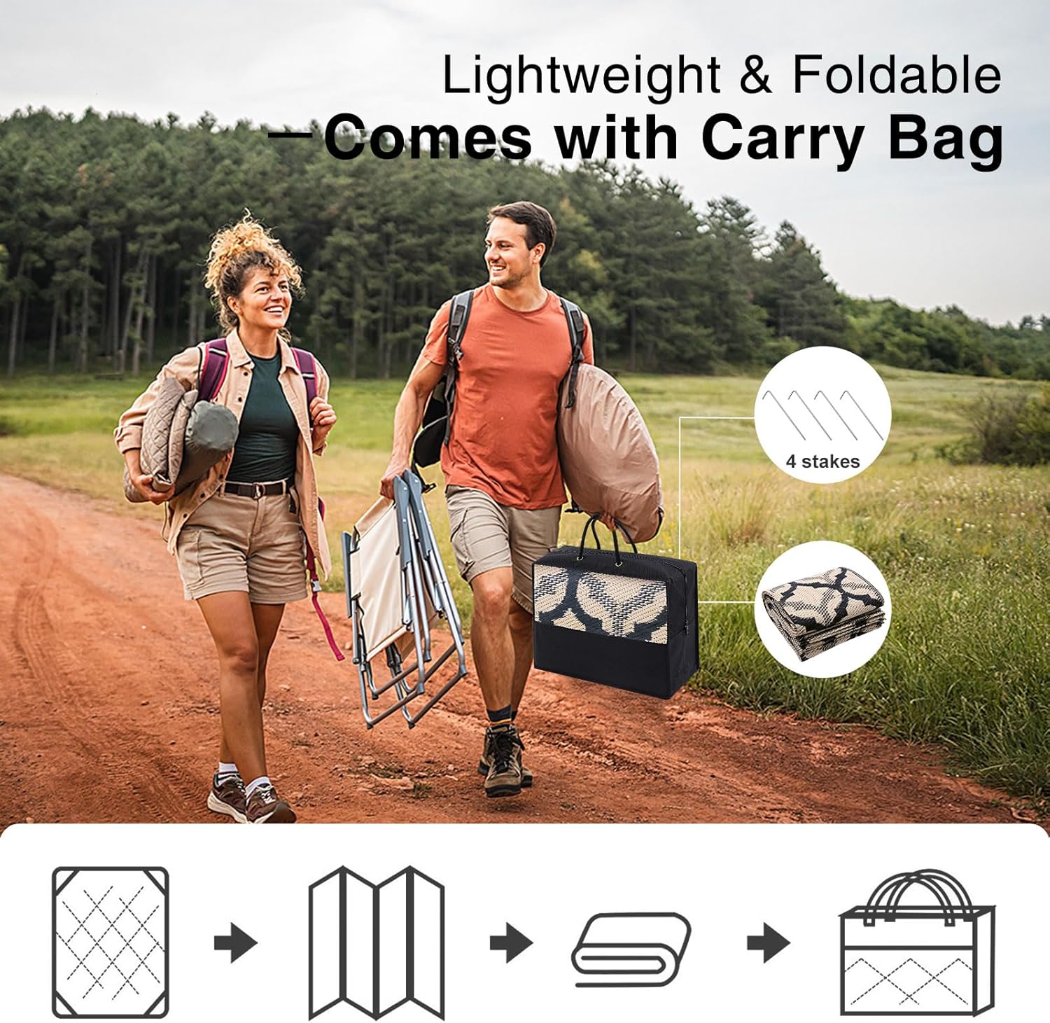 - Lightweight & Portable: Easy to fold and carry, this camping rug is your go-to for outdoor adventures. Ideal for camping trips, gatherings, or sports events, it ensures comfort and style wherever you go.
