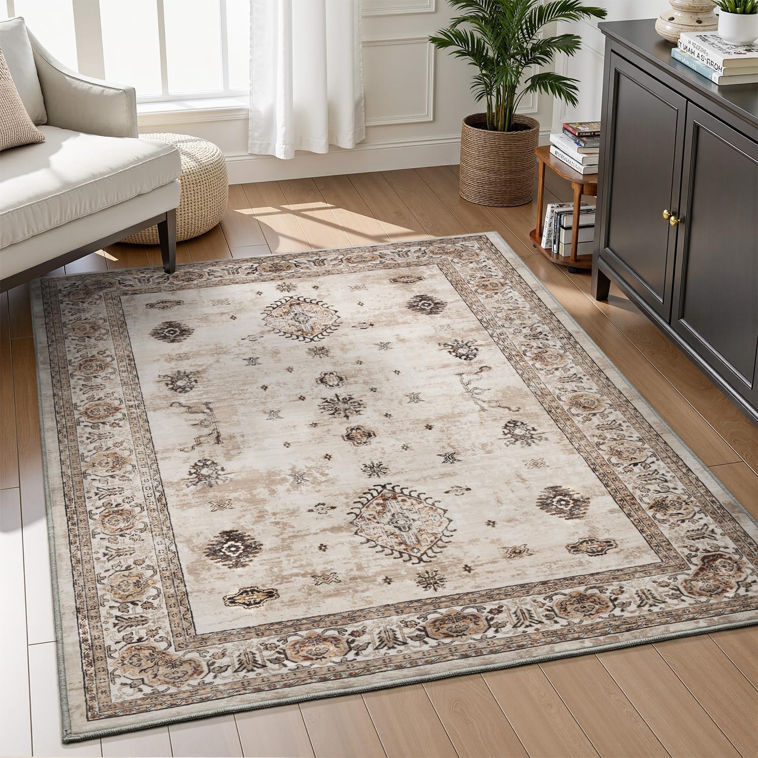 AMOAMI-Vintage Area Rug 3x5 Brown Rugs for Living Room-Soft Washable Rug Non Slip Entryway Rug Indoor Vintage Throw Accent for Bedroom Laundry Room Dining Bathroom Bedside
