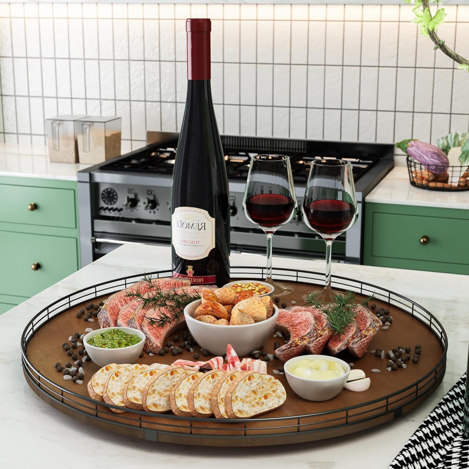 Farmhouse Oak 24" Lazy Susan Turntable Organizer for Cabinet, Round Wooden Lazy Susan Organization and Storage for Dining Table, Pantry, Kitchen, Countertop, Cupboard,Home Decor, Walnut