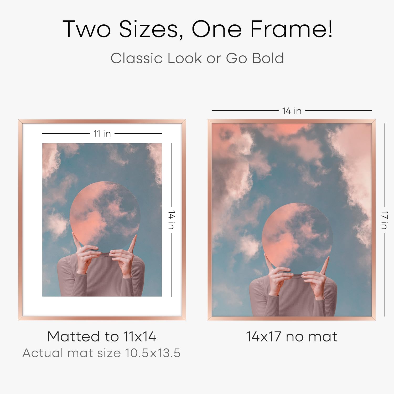 - MATTED OR EDGE-TO-EDGEβYOUR CALL. A crisp 11x14 white mat creates negative space, elevating your image with gallery precision. Or remove it for 14x17 bold, uninterrupted impact.
