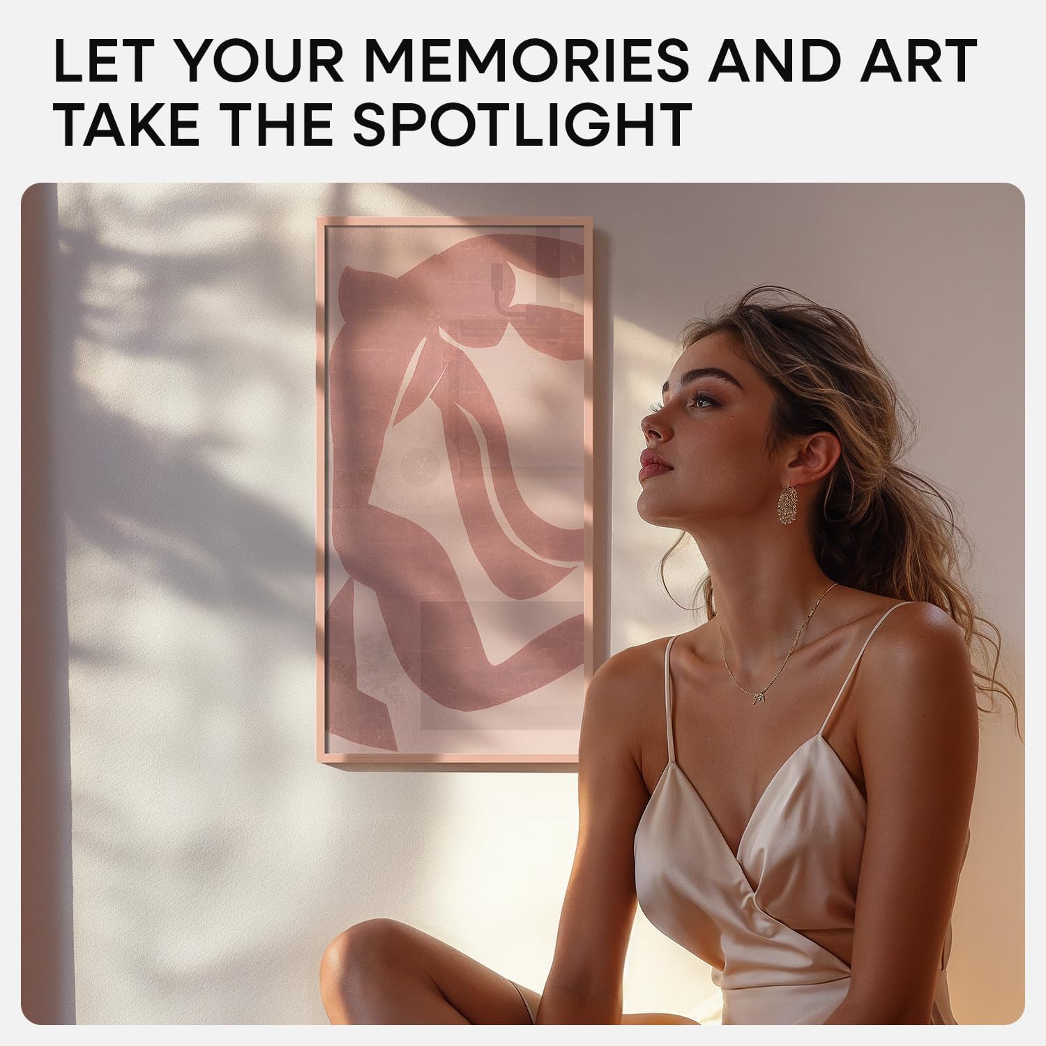 - ROSE GOLD. SOFT GLOW. This aluminum frame features a muted rose finish with a satin texture. It brings gentle contrast to light walls and softens modern interiors with a hint of warmth.