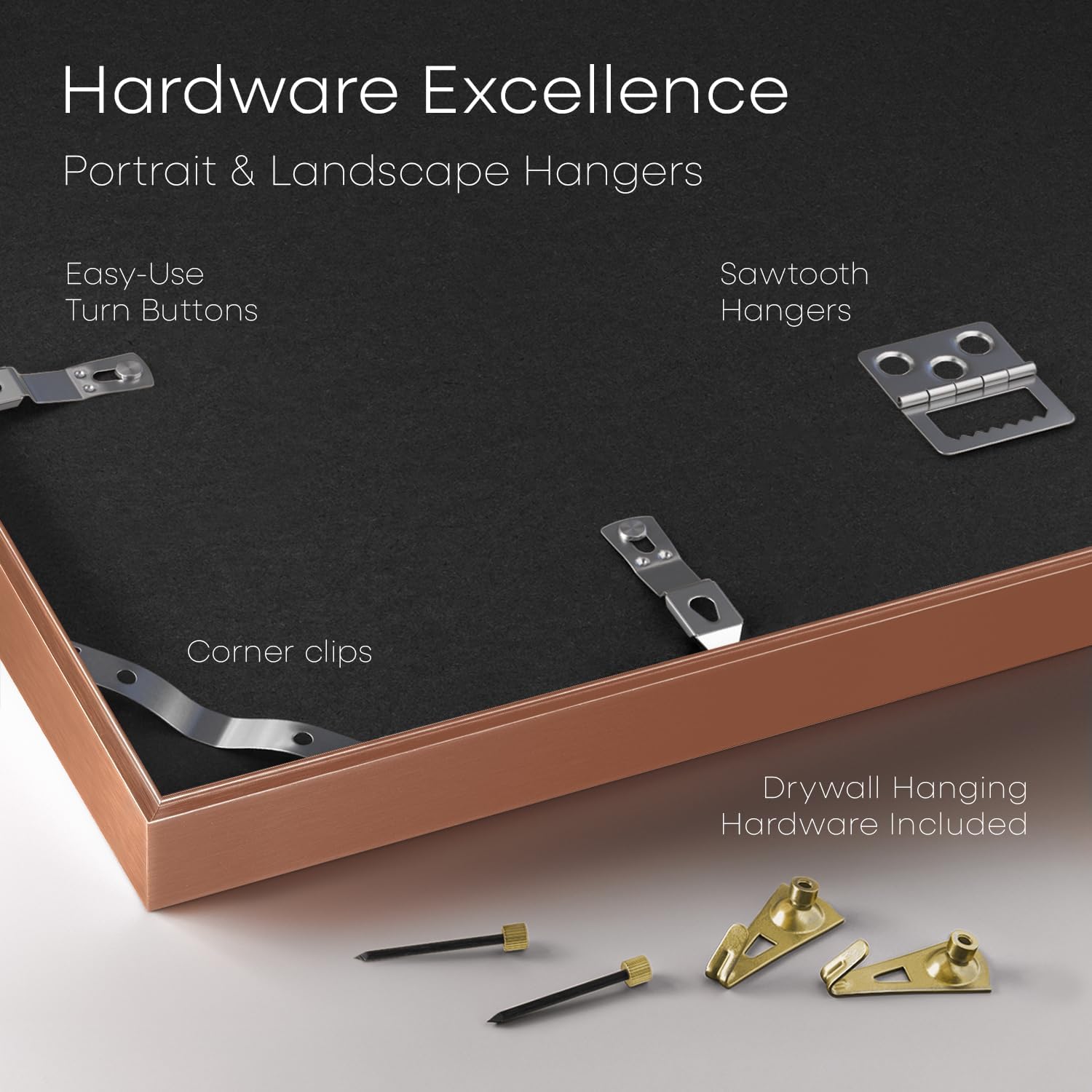 Homeforia 22x28 Rose Gold Picture Frame, High End Metal 22x28 Poster Frames with Mat 18x24 inch Photo, 22 x 28 Thin Frame Matted to 18 x 24 Print, 28x22 Large Frame, Tempered Glass, Wall Kit, Set of 1