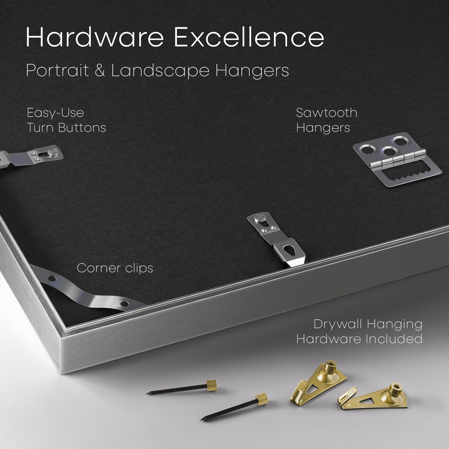 Homeforia Silver 14x17 Picture Frame, High End Metal 14 x 17 Frame with Mat 11 by 14 in Photo, 14x17 Silver Poster Frame Matted to 11x14 Print, 17x14 Hanging Frames, Tempered Glass, Wall Kit, Set of 1