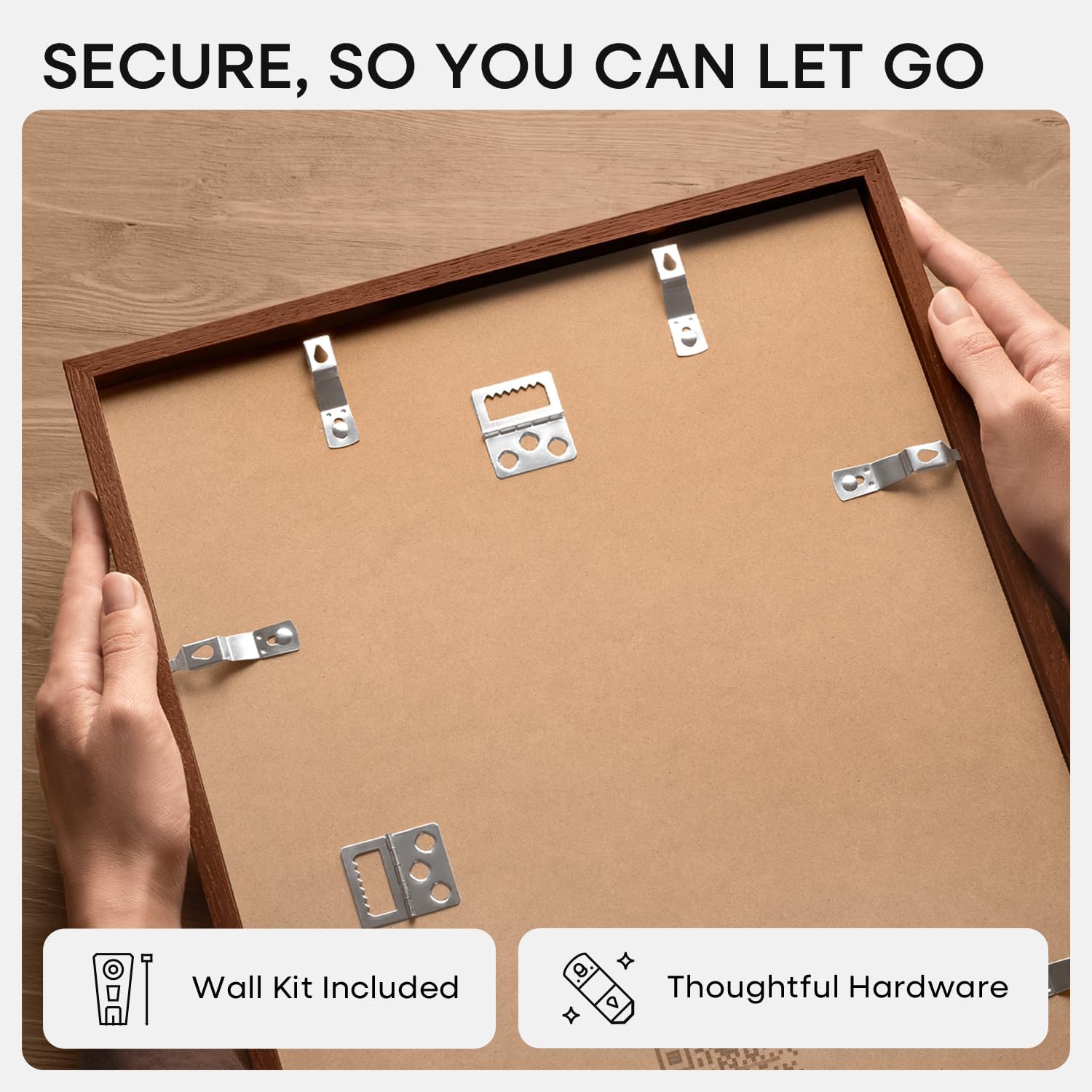 Homeforia 11x11 Picture Frame Brown, High-End Dark Oak 11 x 11 Square Brown Wood Frames with Mat 9 by 9 Photo, 11by11 Wooden Walnut Poster Frame Matted to 9x9 Print, Tempered Glass, Wall Kit, Set of 1