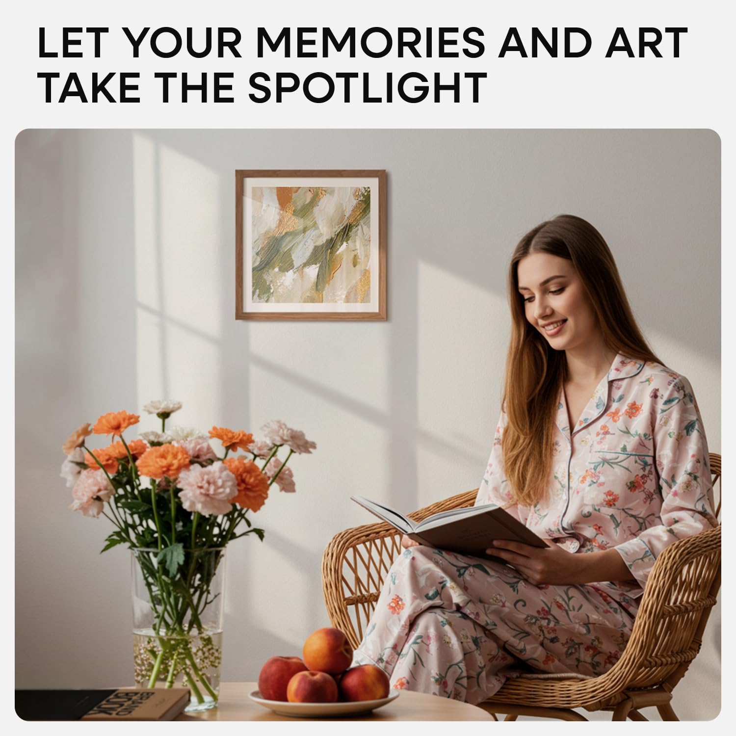 - MATTED OR EDGE-TO-EDGEβYOUR CALL. A crisp 9x9 white mat creates negative space, elevating your image with gallery precision. Or remove it for 11x11 bold, uninterrupted impact.