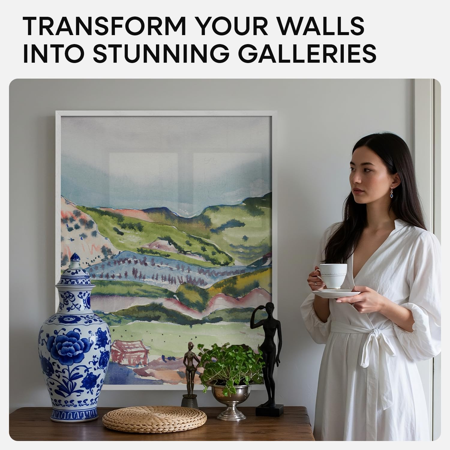 Homeforia 22x28 Poster Frame White, High End Oak 22 x 28 Wood Picture Frame with Mat 18 by 24 for Photo, 22x28 Large Wooden Frame Matted to 18x24, 28x22 Thin Frames, Tempered Glass, Wall Kit, Set of 1