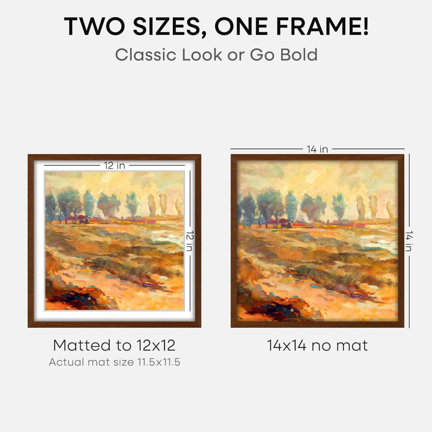 - MATTED OR EDGE-TO-EDGEβYOUR CALL. A crisp 12x12 white mat creates negative space, elevating your image with gallery precision. Or remove it for 14x14 bold, uninterrupted impact.