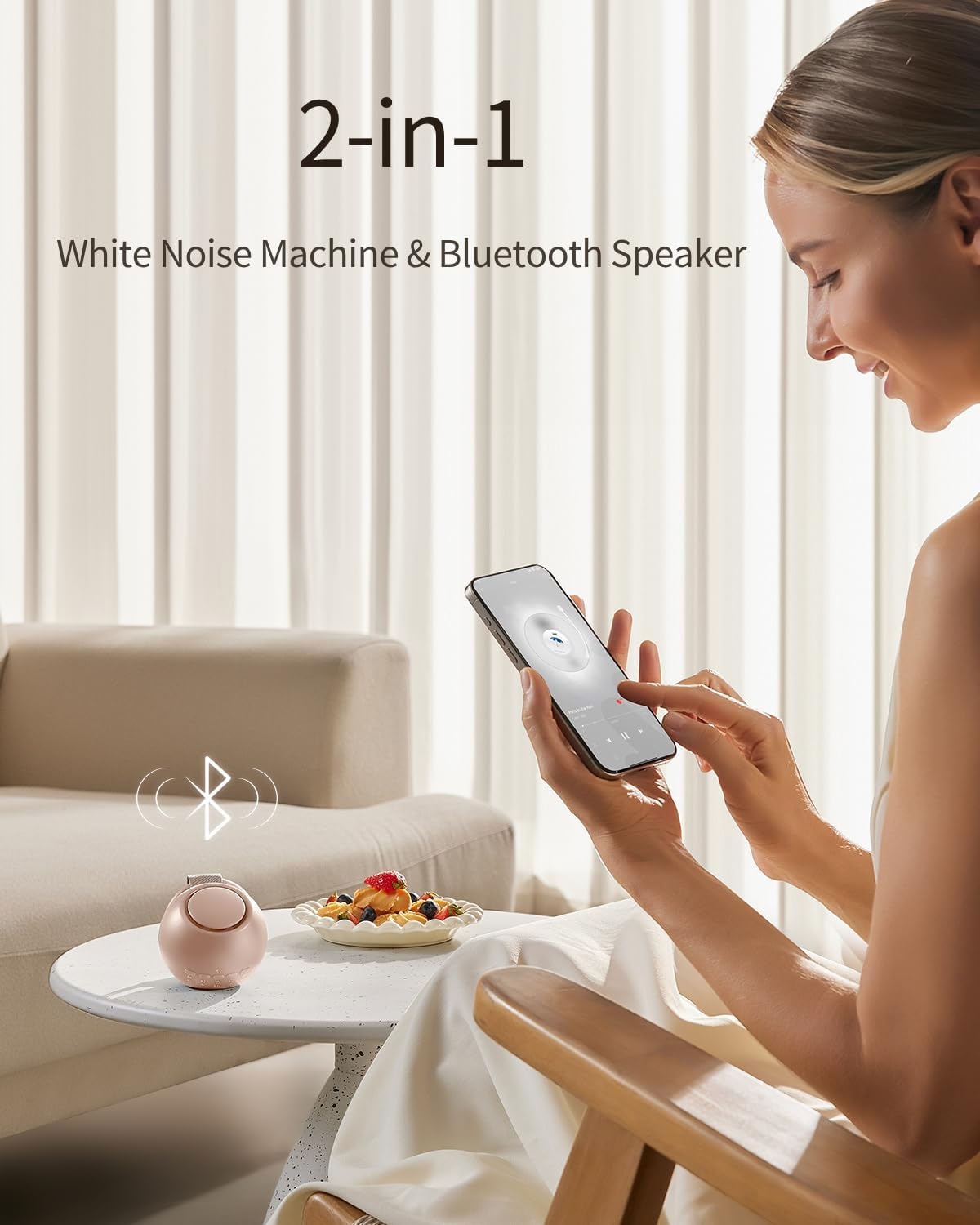 2025 Mom's Choice Awards, Portable Sound Machine for Baby Adult, AI Cry Detection, 18 Soothing Sound, Bluetooth Rechargeable White Noise Machine for Home Office Travel, Nursery Light, Pink
