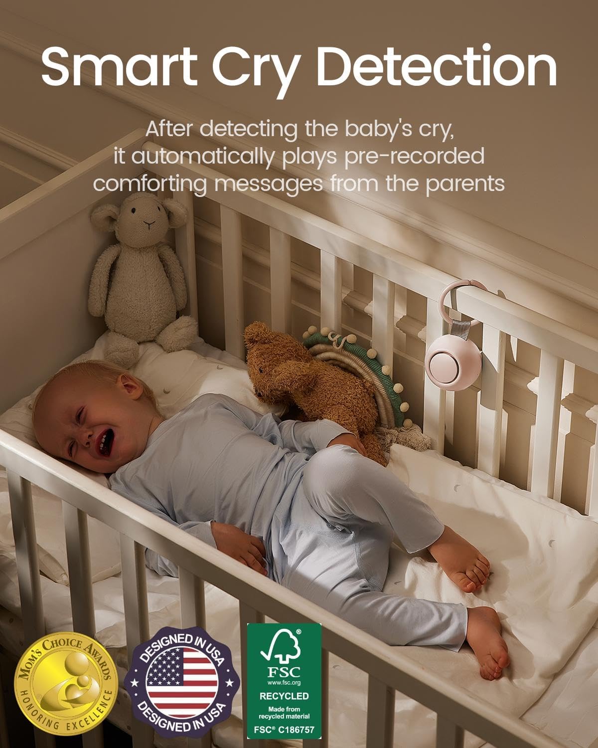 - AI ๐๐ฟ๐ ๐๐ฒ๐๐ฒ๐ฐ๐๐ถ๐ผ๐ป: Equipped with AI Cry Detection technology, this device automatically detects your babyโs cries and plays pre-recorded comforting words along with soothing sleep music. With directional sound field technology, it can improve the noise blocking effect by 37%. This noise machine for baby offers smart, automated comfort when you need it most.