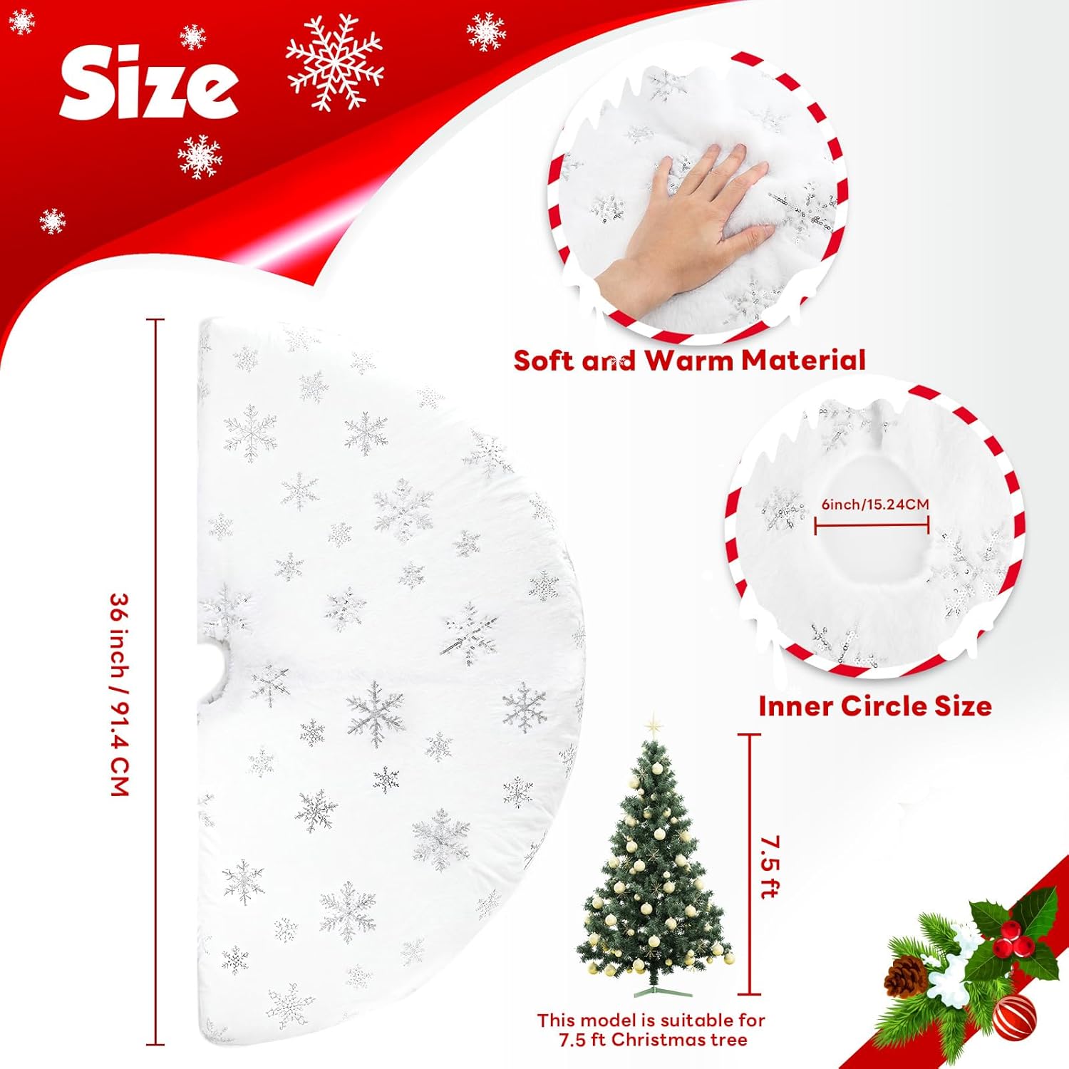 - 🎄【Generous Size】Measuring 36 inches wide, this tree skirt offers ample coverage for standard-sized Christmas trees. It provides a stylish and decorative base for your tree.