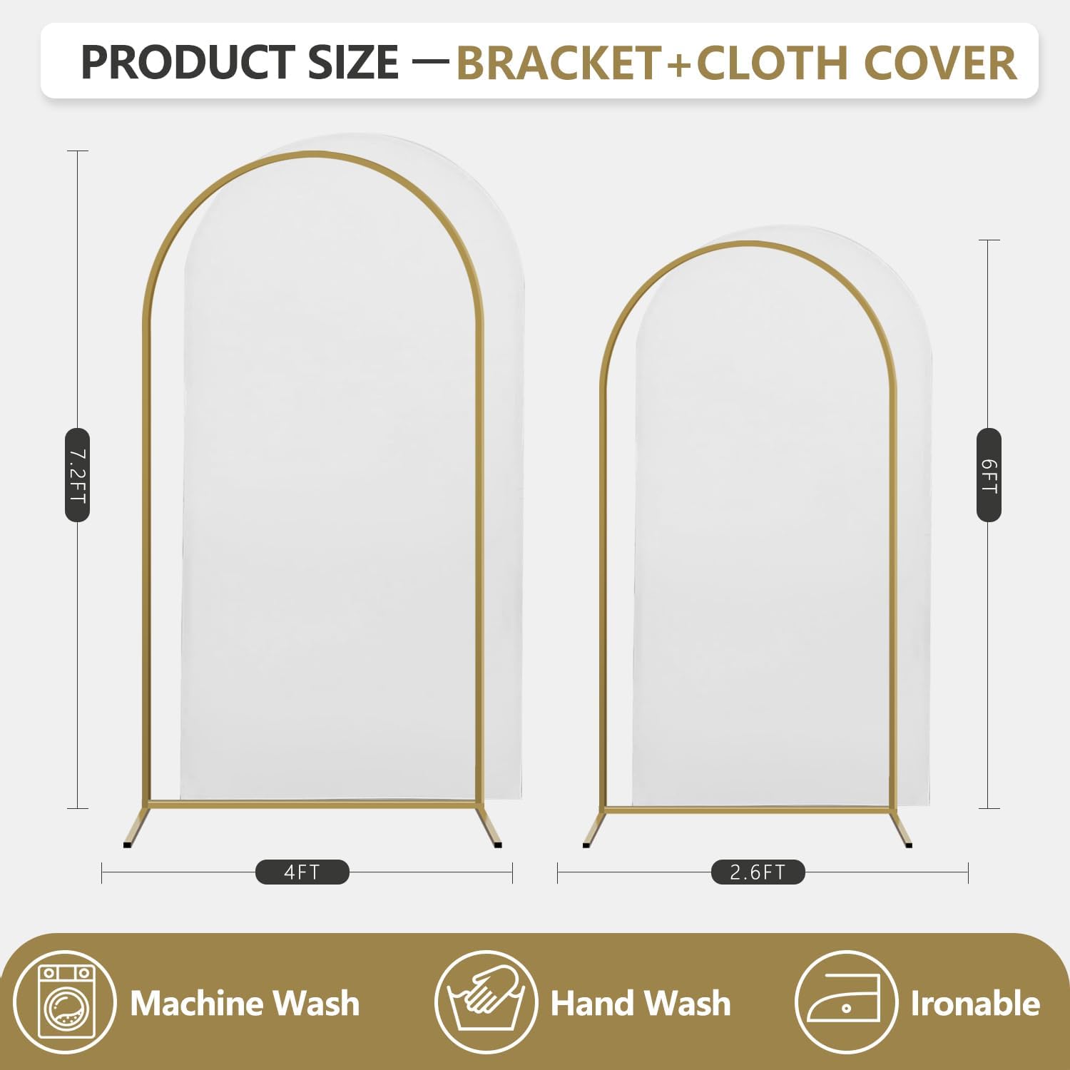 Arch Backdrop Stand and Cover Set, 2 Metal Balloon Arch Backdrop 7.2ft 6ft, Gold Arched Stand Frame for Wedding, Parties,Birthday, Backdrop Decorations (White,7.2ft+6ft)