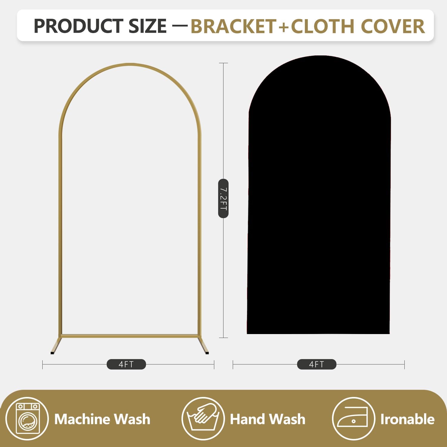 Arch Backdrop Stand and Cover Set, Metal Balloon Arch Backdrop 7.2ft, Gold Arched Stand Frame for Wedding, Parties,Birthday, Backdrop Decorations (Black,7.2ft)