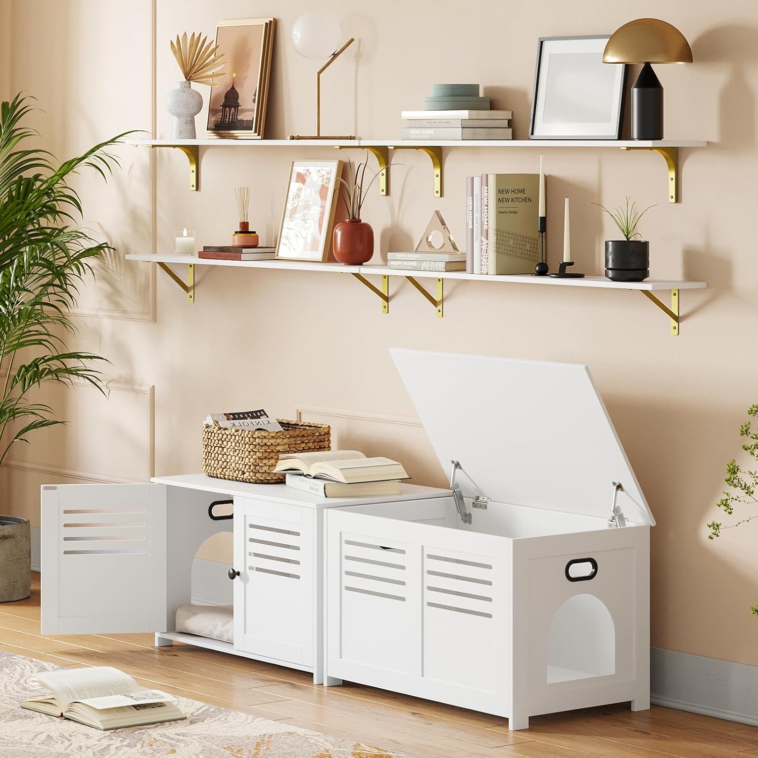 - ใWide ApplicationใUse it as a unique TV wall, bookshelf, coffee bar or display stage. Even to be an ideal play area for your cats. Wide storage shelves can store books, games, decorations, plants, towels, photos, collectibles etc. Create additional storage in living room, bathroom, bedroom, balcony, study, kitchen, laundry, bar area and office