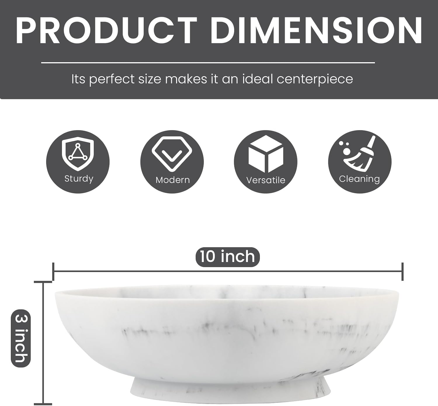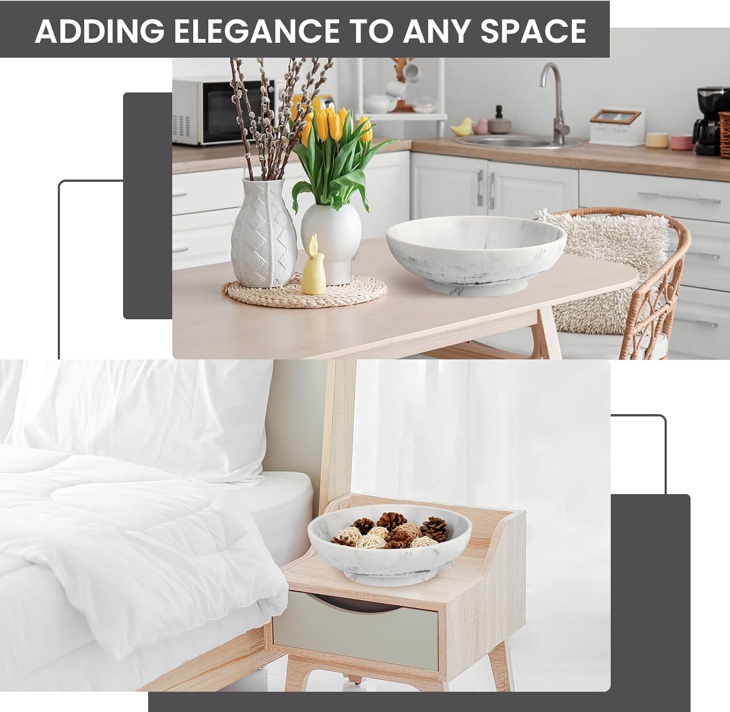Large Decorative Bowl,Modern Fruit Bowl for Kitchen Counter,Handicraft Decorative Bowls for Home Decor,Stylish Key Bowl for Entry Table,Artificial White Marble