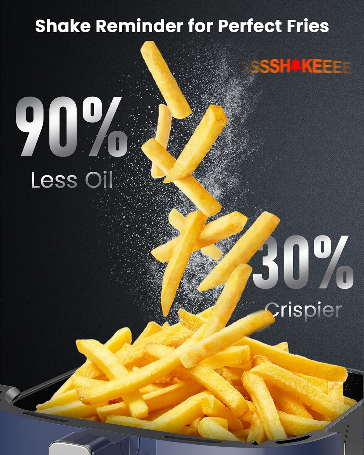 Nuwave Brio Plus Air Fryer 8 Qt, New & Improved, PFAS-FREE, 7 Digital One-Touch Cook Functions that AIR FRY, BAKE, ROAST, DEHYDRATE, TOAST, REHEAT, PREHEAT, 150 Presets, 50°F~400°F (Deep Blue)
