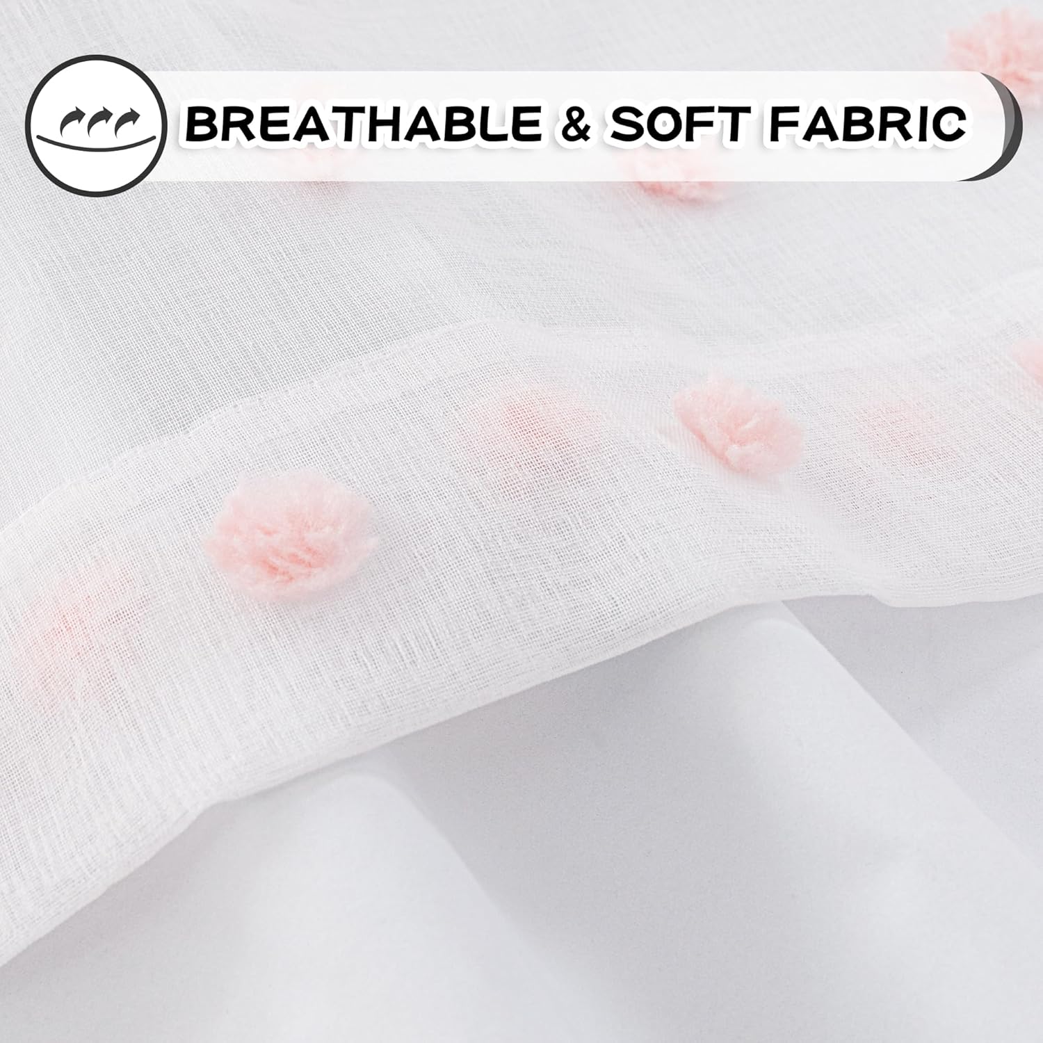 - Unique Design:These cute pom poms combine bohemian elements with modern style. The white sheer curtain is embellished with cute pom poms, adding interest, glamour and a beautiful look to your windows.