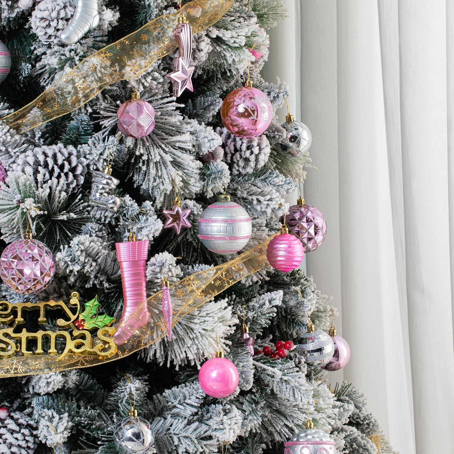 150PCS Pink and Silver Christmas Ornaments, Shatterproof Christmas Ball Ornaments Set, Assorted Christmas Baubles Hanging Decorations for Xmas Tree Home Festival Party Wedding (Pink & Silver)