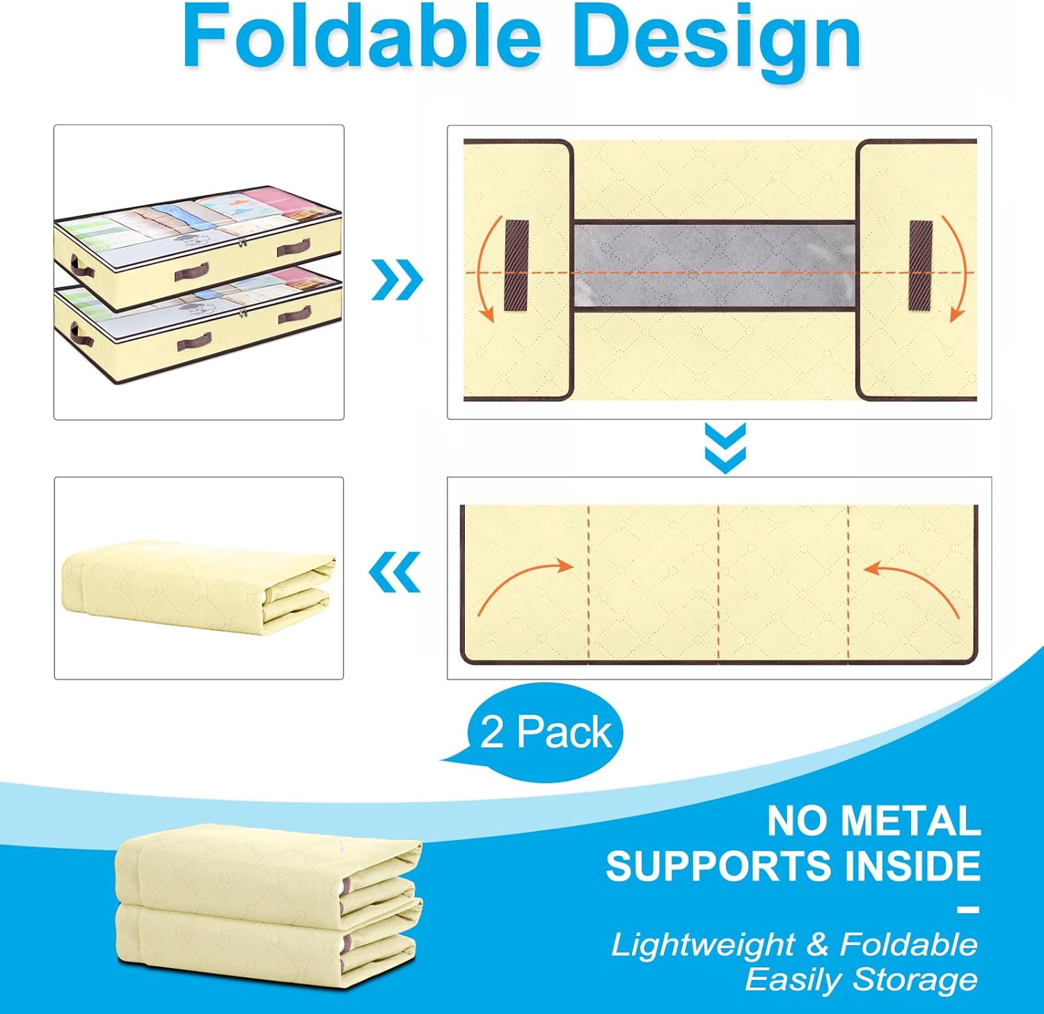 - User-friendly Design : This underbed storage bags have two sturdy handles on the front and side for easy removal. Bimetal zip design, strong and durable. Top transparent window, can easily find the desired items.
