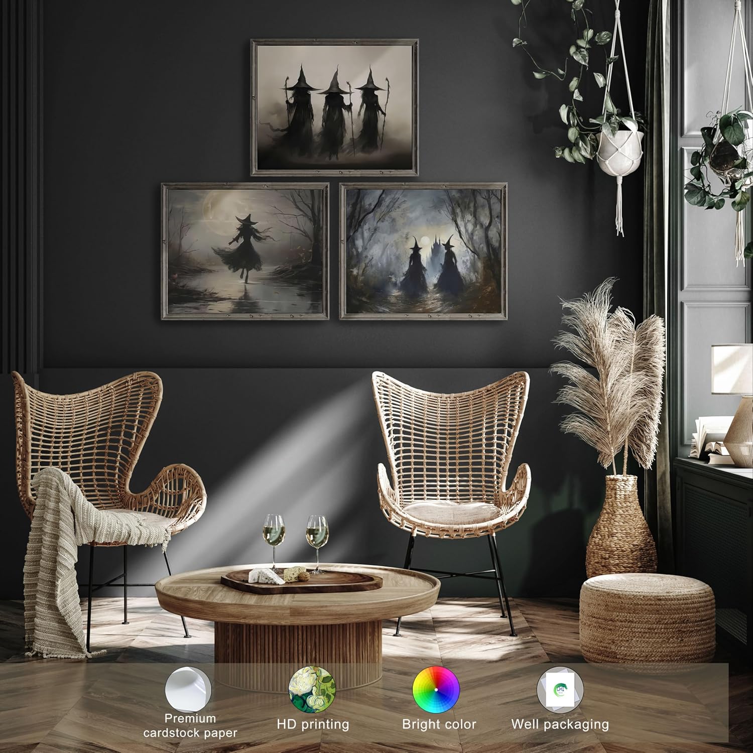 LANCHI95 3 Pcs 8x10in Vintage Rustic Witch Posters Halloween Wall Art Witch in The Forest Painting Prints Goth Dark Moody Wall Decor for Living Room Bedroom 8x10 in (UNFRAMED)