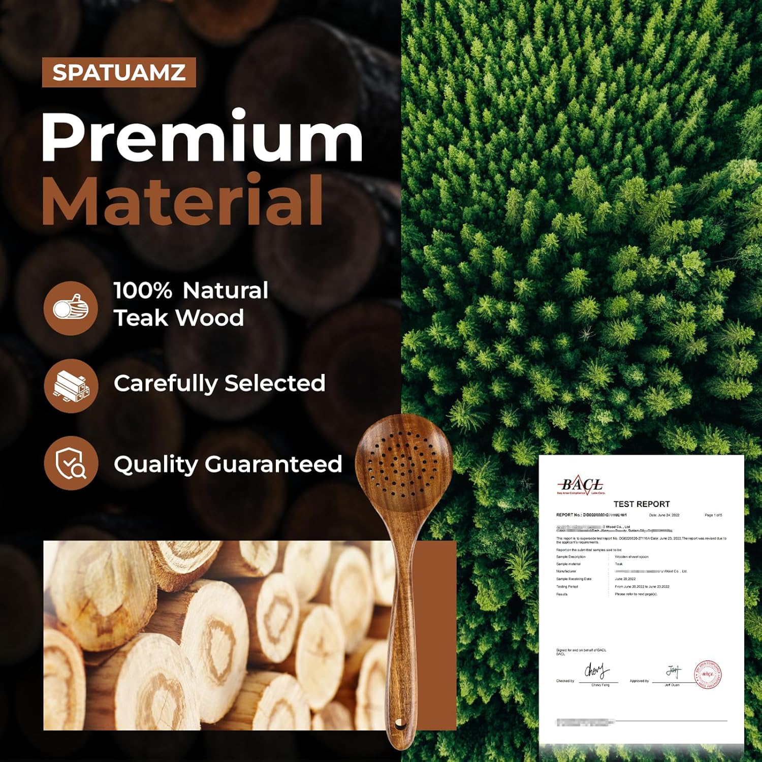 - 【100% Natural Teak Wood – Safe & Healthy】: Our wood utensils set is made from 100% natural teak wood, ensuring it’s both safe and healthy for everyday use. These wooden cooking spoons are free from any harmful substances, making them an ideal choice for those seeking high-quality, harmless kitchen utensils. Please note: The current packaging may say “Natural Wood,” which refers to the same authentic teak material. Updated packaging with the correct teak wood labeling is being rolled out