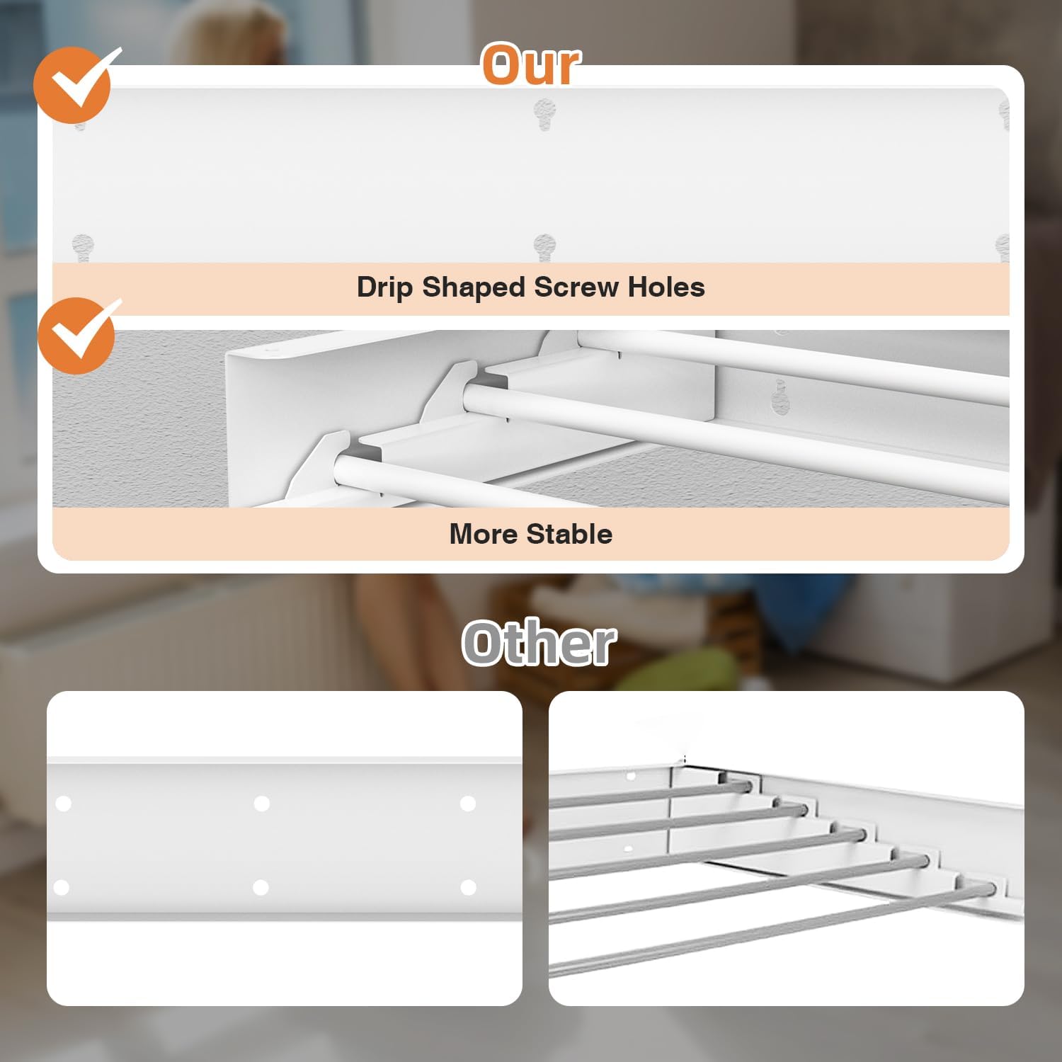 Laundry Drying Rack Collapsible, Wall Mounted Clothes Drying Rack Wall, Space Saving Drying Rack for Laundry, 19.8" Wide, 3 Aluminum Rods, 50 lb Capacity