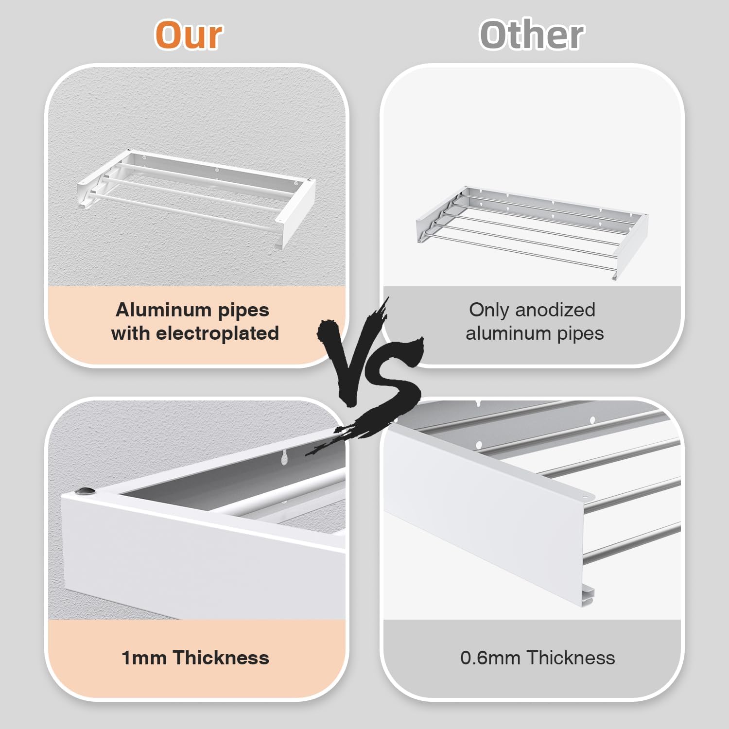 - Heavy Duty & Sturdy: 5 drying rods of the collapsible clothes drying rack are made from premium stainless steel, noticeably thicker and more robust than the standard silver pipes seen in the market, without risk of bending or deformation. 60lbs Capacity. This clothes dryer rack takes up little room, but when open you can fit so much! Compact yet functional.