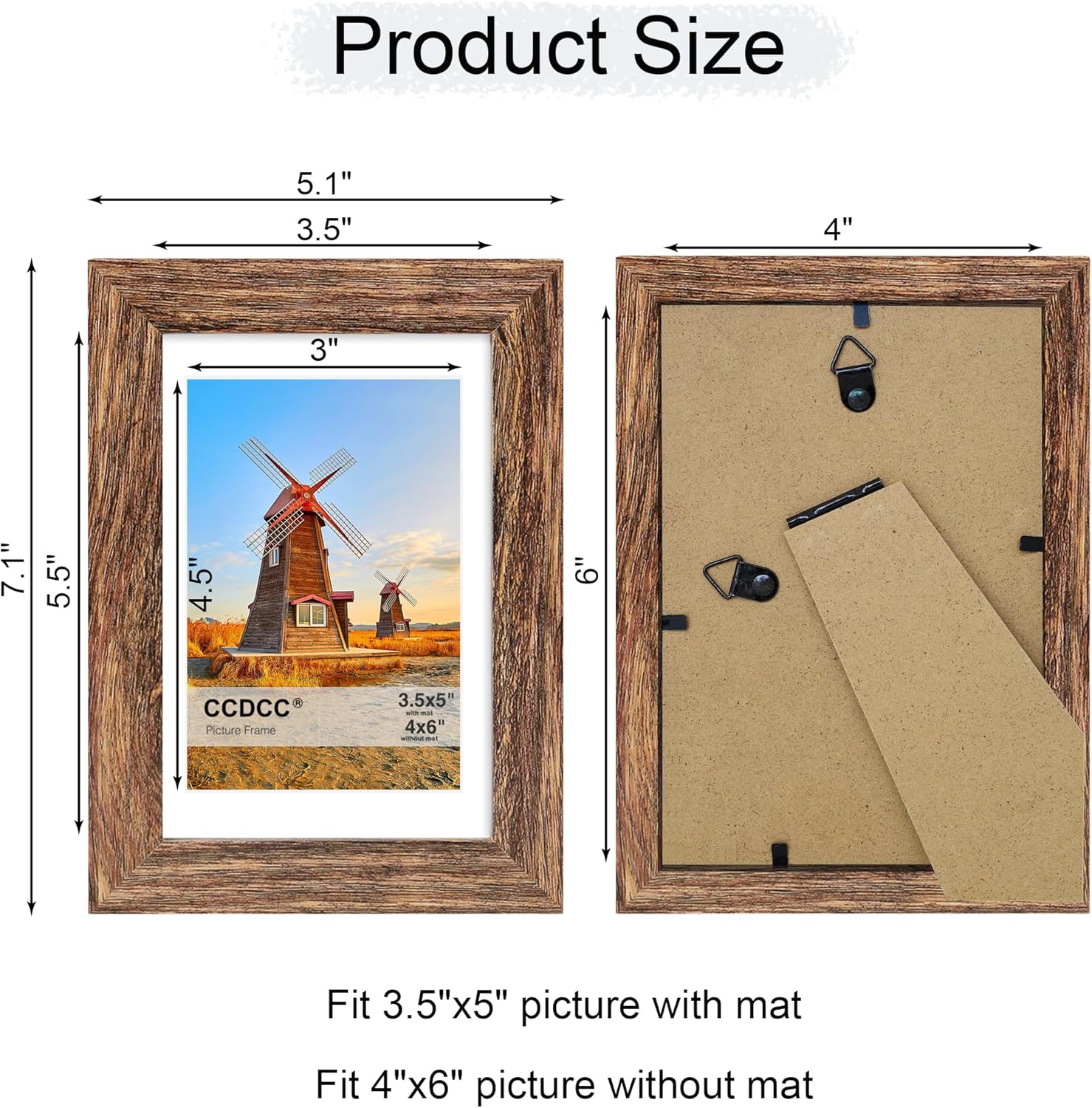 - Display Size:Our 4 x 6 picture frames fit a 3.5x5 photo with mat, if you remove the mat, it can fit a 4x6 photo