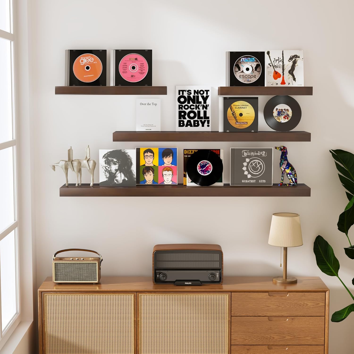 - Premium Wooden Floating Shelves -Unlike others, they are beautifully-finished, fantastic-smelling solid pine,and they are handcrafted out of finest solid pine wood measuring 48" x 8" x 1.38",revealing its own character of knots and natural wood grain, making each ledge a little different but equally stunning.