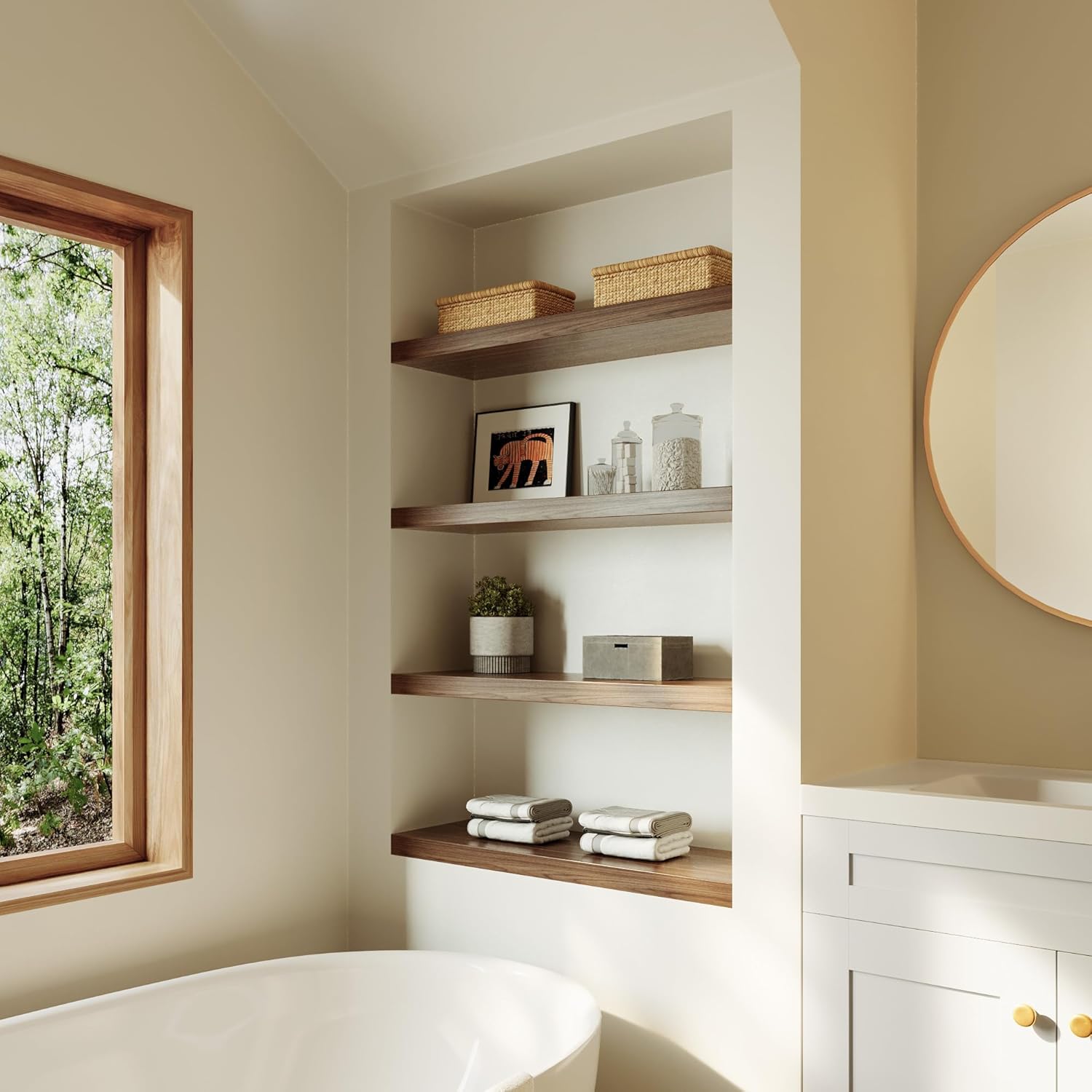 - Heavy Duty - The wooden shelf can hold up to 25 lbs. Not only meet your daily home decor placement needs, but also able to hold many bulky items such as dishes, vases, lots of books and more