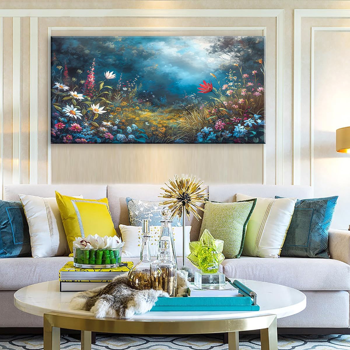 LASMOND Beautiful Colorful Grassland in Forest Landscape Wall Art Decor Artwork for Bedroom (20x40 Inches)