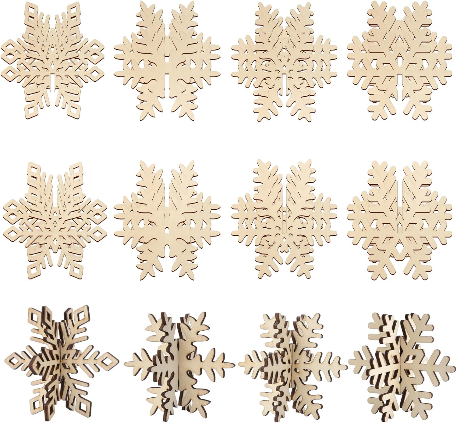 - Unique 3D Snowflake Shape Wood Crafts To Paint - These unfinished wood sheets are cut out to cute snowflakes patterns, in sufficient quantity, and suitable size for you to use on DIY craft projects, you can also share them with your kids and friends.
