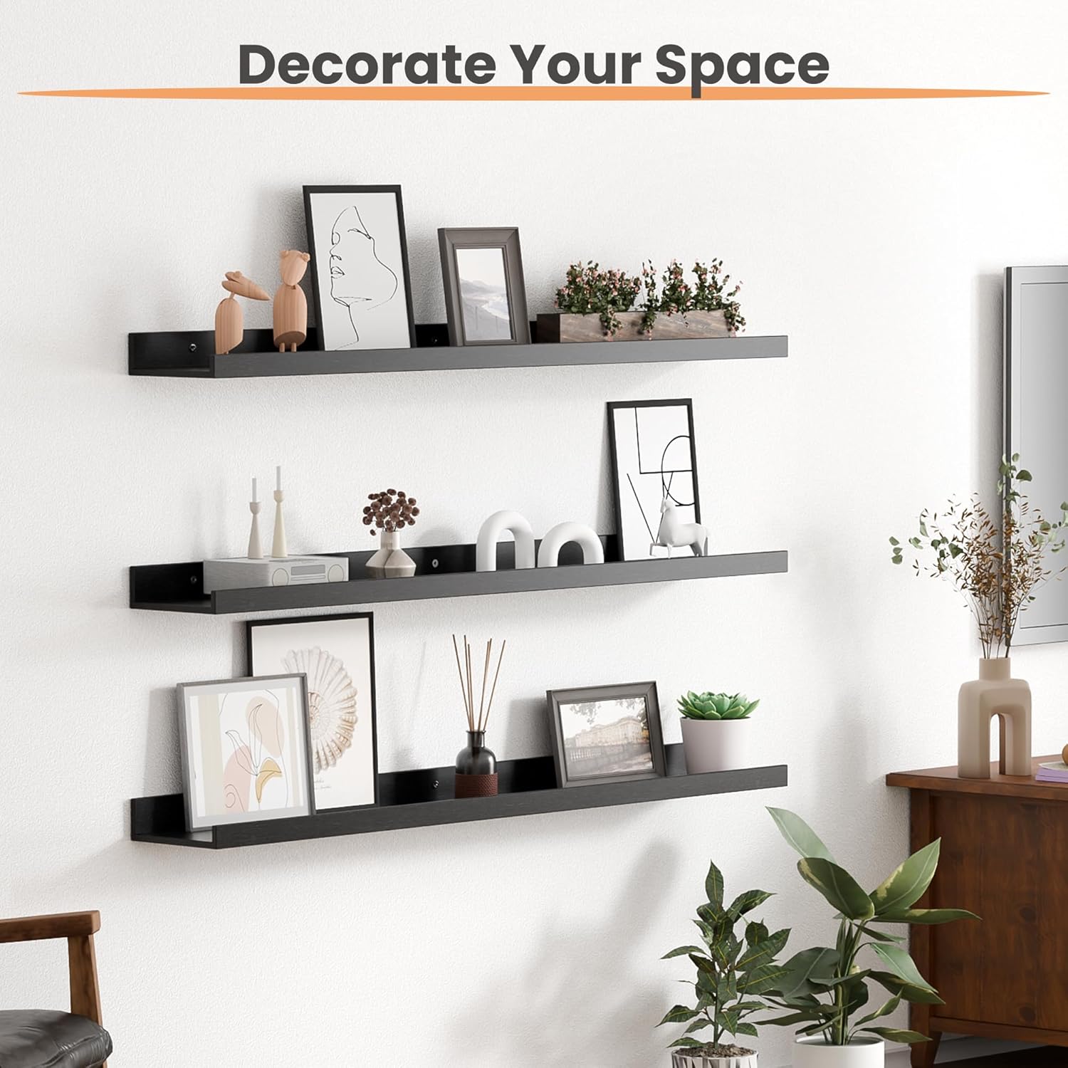 - Wood Shelves Maximize Your Wall Space - Our floating shelves are designed to efficiently utilize every inch, adding an artistic touch to your living space. Whether showcasing cherished collections or organizing daily essentials, they effortlessly enhance both the functionality and aesthetics of your home.