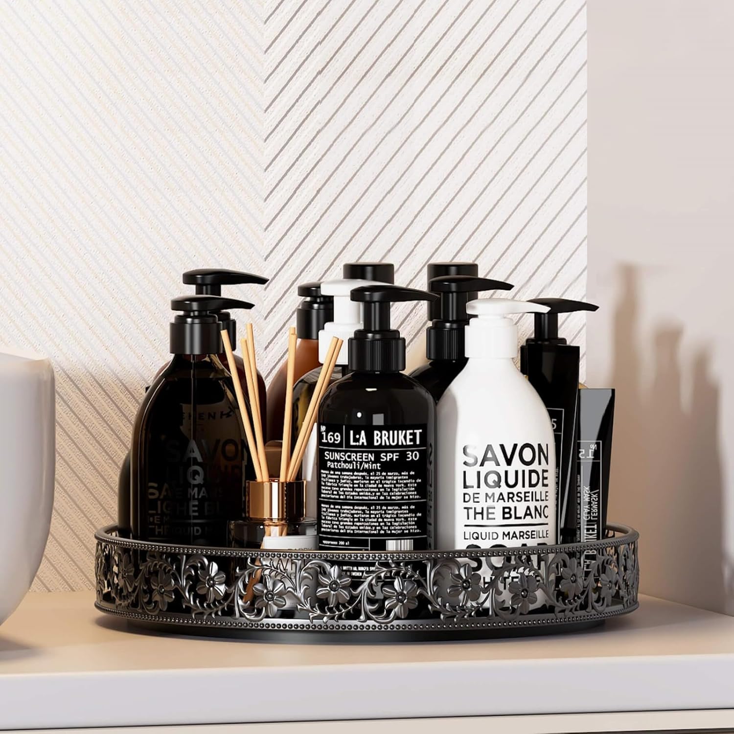 10" Lazy Susan Organizer Turntable,360 Rotating Spice Rack Lazy Susan for Cabinet Dining Table Top Countertop Pantry Kitchen Cupboard Vanity Bathroom Refrigerator Black