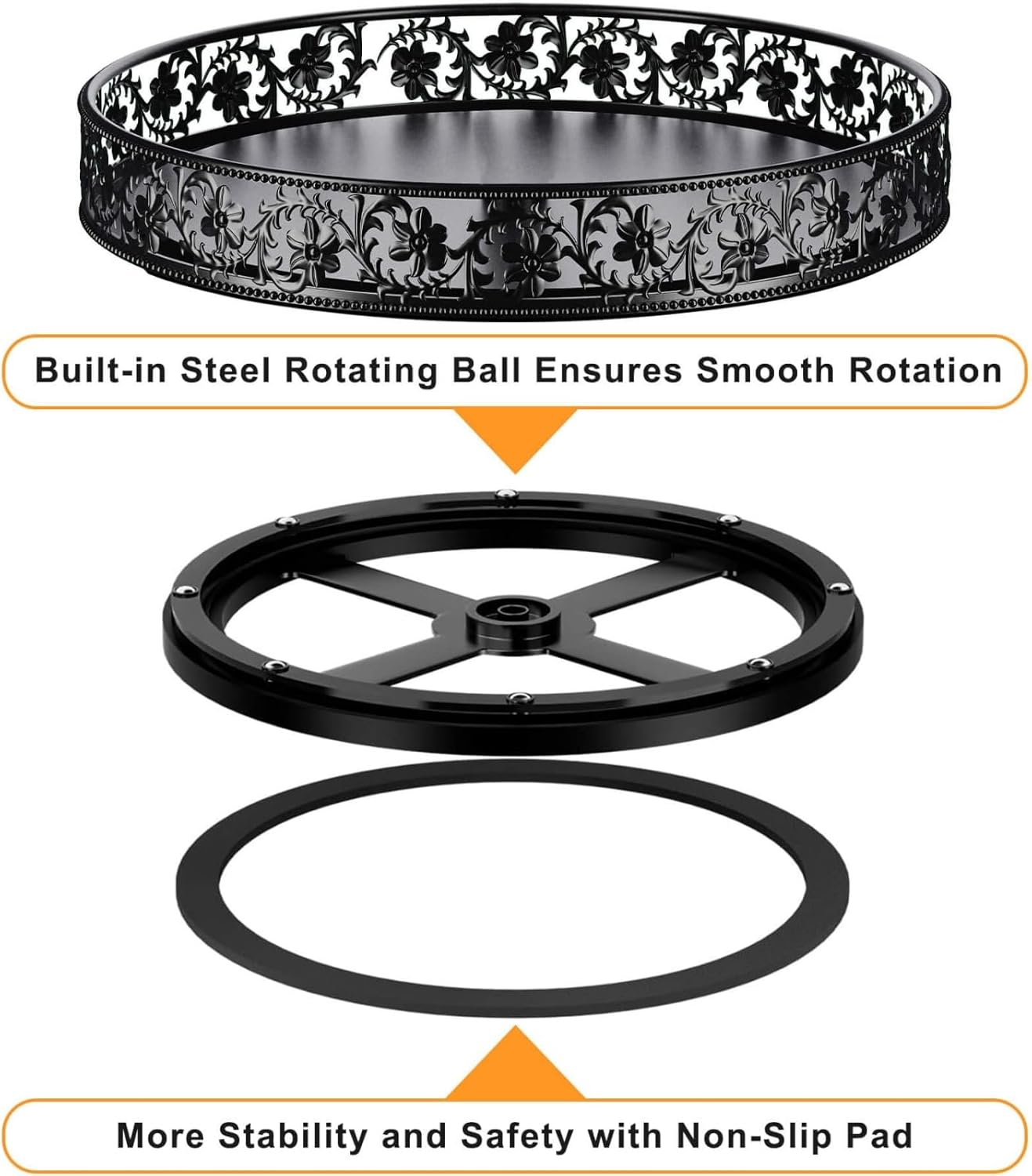 - 360ยฐRotation for Easy Access: The lazy susan is equipped with steel ball bearings for a smooth 360ยฐrotation. Perfect for deep cabinets, cupboards, corner pantry or countertop storage, easy to access what you need without knocking over any bottles. Large swivel base and non-slip pad design make this lazy Susan organizer more stable and sturdy.