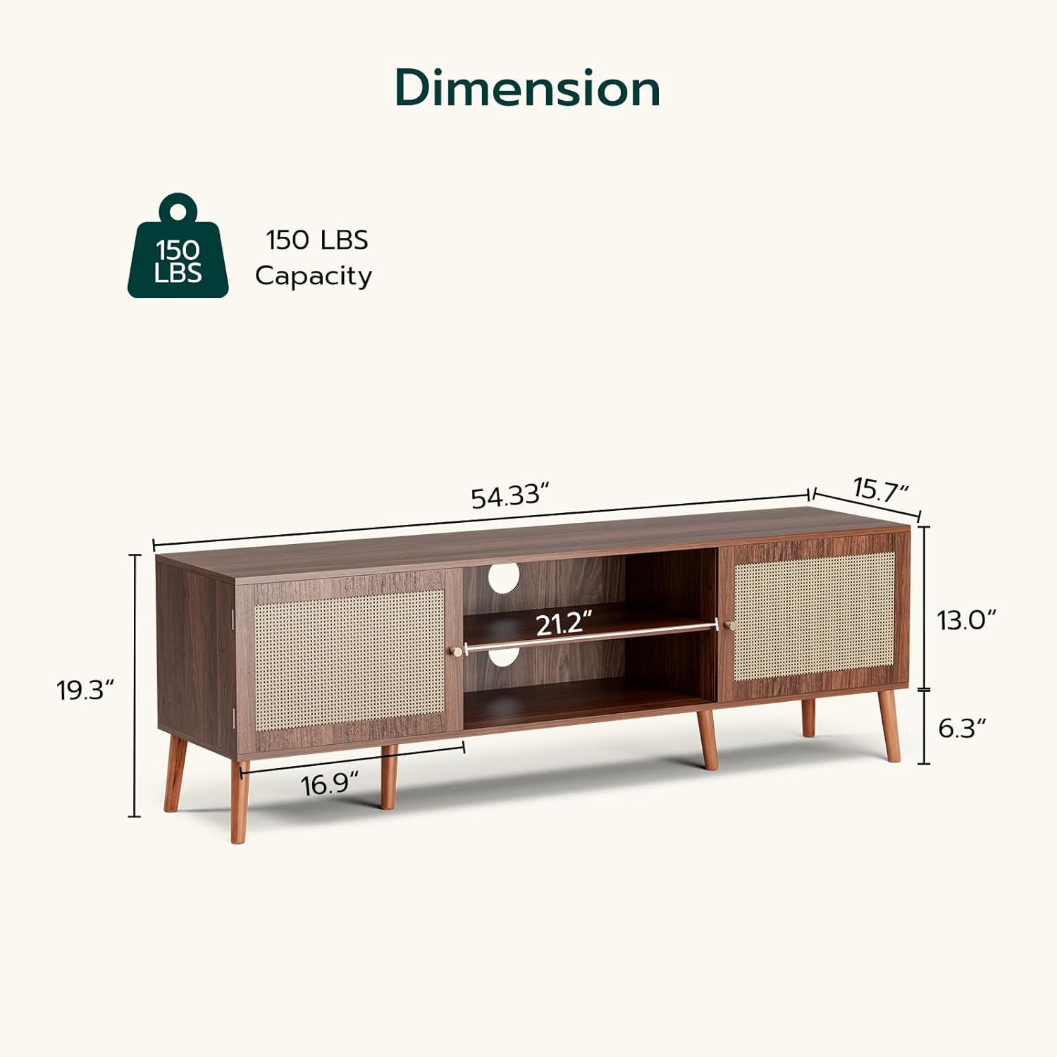- TV COMPANION: Rattan-decorated doors match the natural surface, this TV stand with storage blends modern and boho style. If your living room is calling for a new upgrade with storage, this TV stand is a great addition