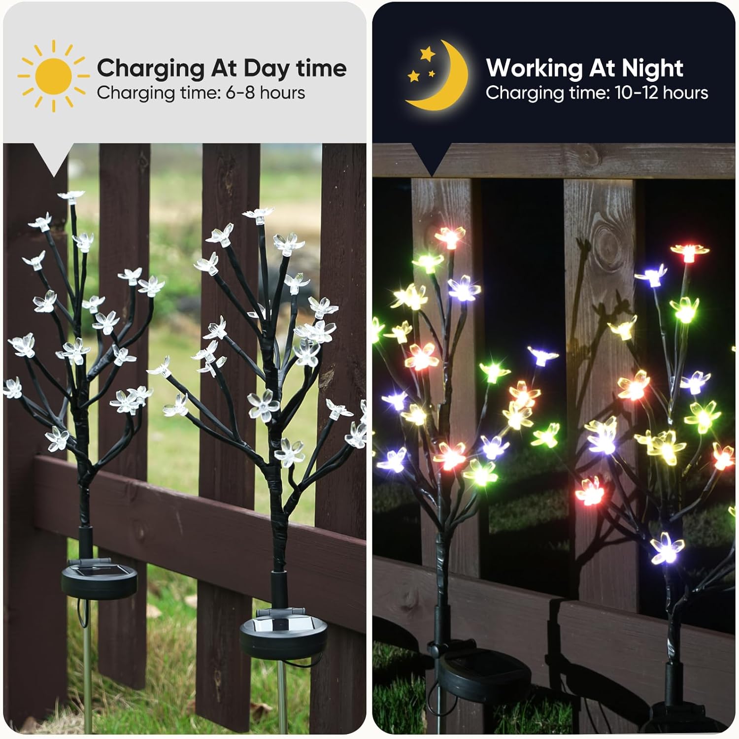 - 【Beautiful Packaging And Worry Free Purchase】-The Solar Garden Lights outdoor waterproof come in a carefully designed packaging, making them a perfect gift for loved ones, family, and friends. Each pack includes 6 multicolor solar cherry blossom lights that stand 28 inches tall. If you have any questions or concerns about these solar landscape lights, our customer service team is available to assist you.