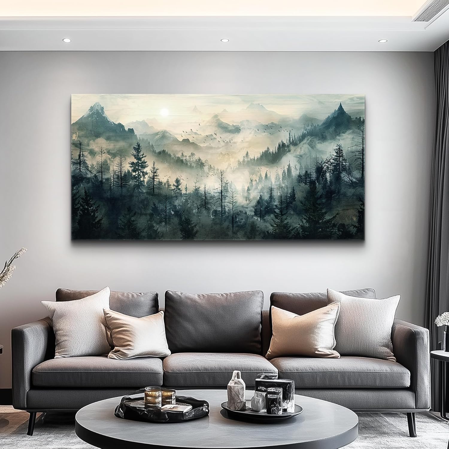 KELIYUAN Large Canvas Misty Forest Wall Art Mountain View Home Decor For Living Room Bedroom Office Natural Landscape Wall Decoration Painting Modern Printed Artwork Can Be Hung Directly 30x60 In