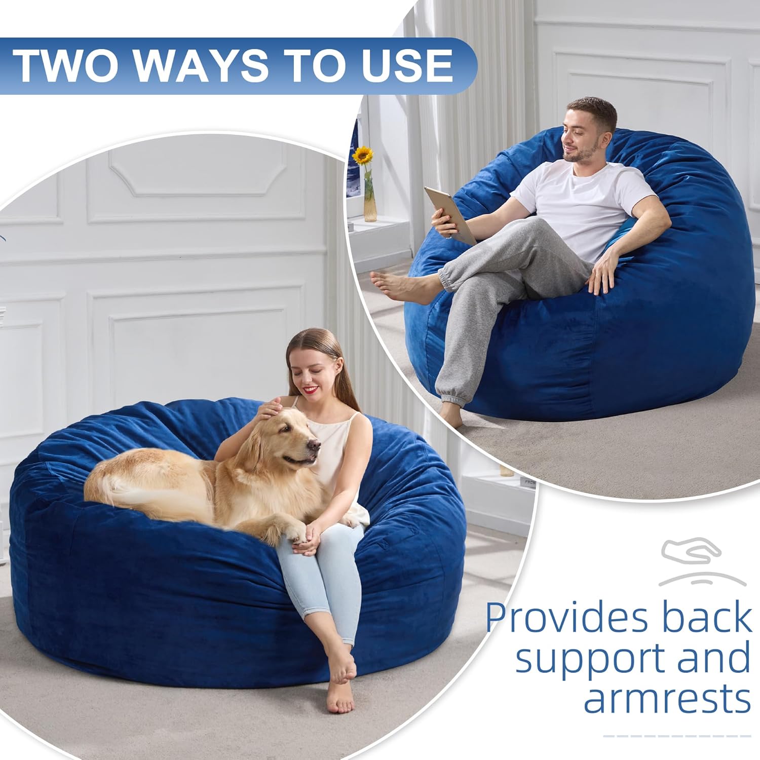 Hobestluk 5FT Bean Bag Chair Giant Bean Bag Chairs for Adults Large Bean Chairs with Removable Cover, Beanbag Chair with Filler, Adult Bean Bag Chairs for Living Room, Bedroom