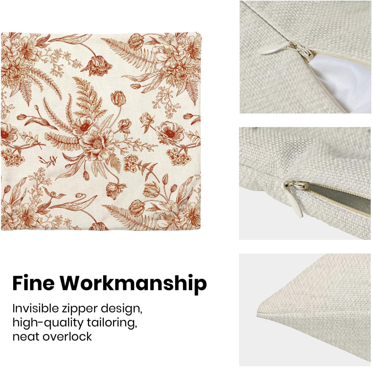 - 【Spring Pillow Covers】 Our Chinoiserie floral throw pillow covers 18x18 inch are made of excellent breathable polyester cotton fabric. The orange and White floral decorative pillow covers is sturdy, soft and skin-friendly. The plant outdoor pillow covers adopt exquisite edging technology and four sides of our floral pillow covers are sewn firmly, which is not easy to open the line.