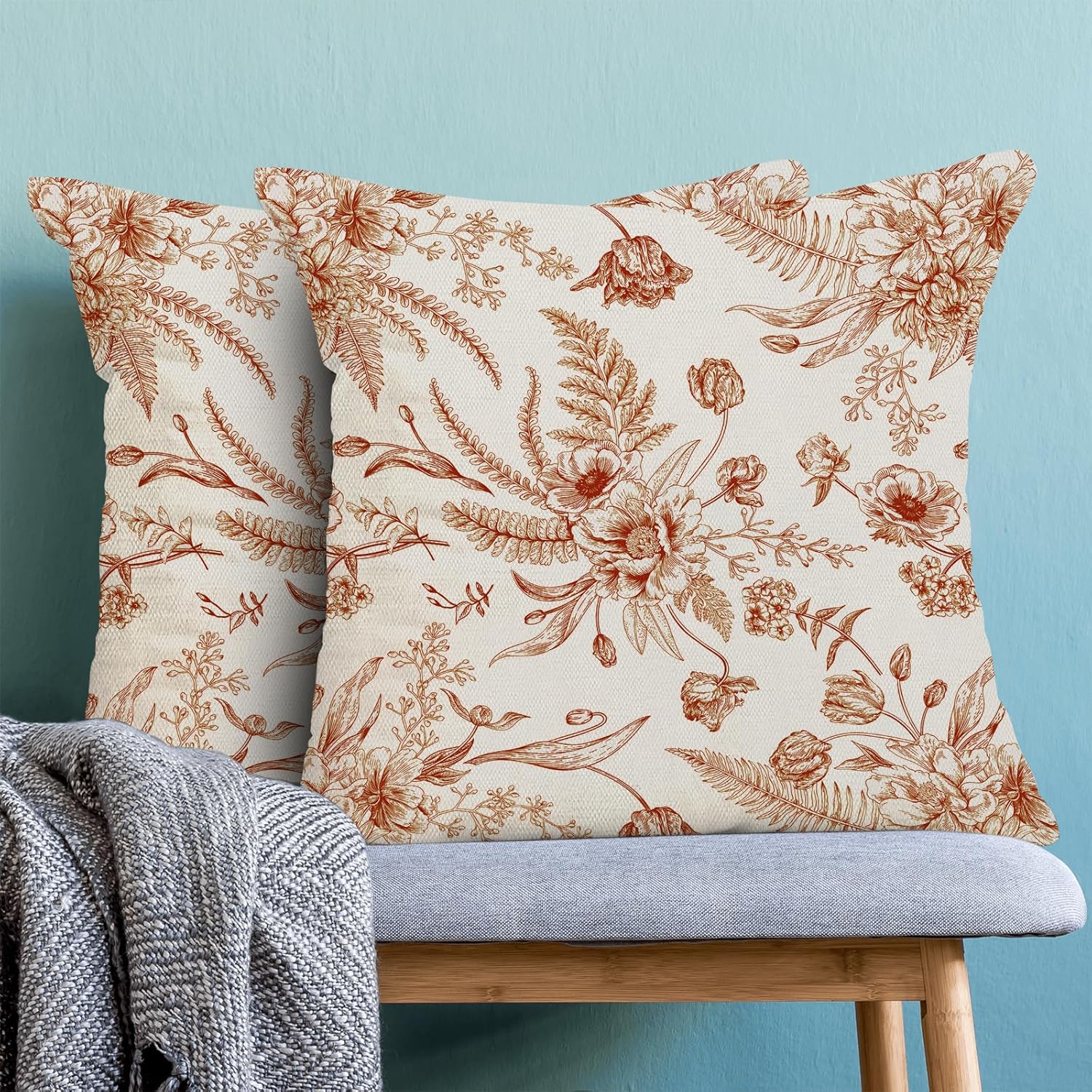 CXMEIFLY Burnt Orange Spring Pillow Covers 18 x 18 Inch Set of 2 for Chinoiserie Flowers Decor Throw Pillows Floral Leaves Seasonal Plant Outdoor Decorative Cushion Cases for Couch Bed Decorations