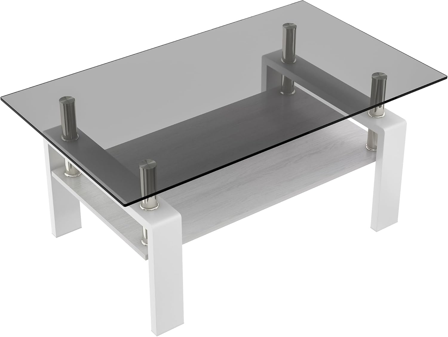 Glass Coffee Table Rectangle Living Room Center Table, with Gray Tempered Glass Tabletop and White MDF Layer,for Living Room and Office, Gray+White