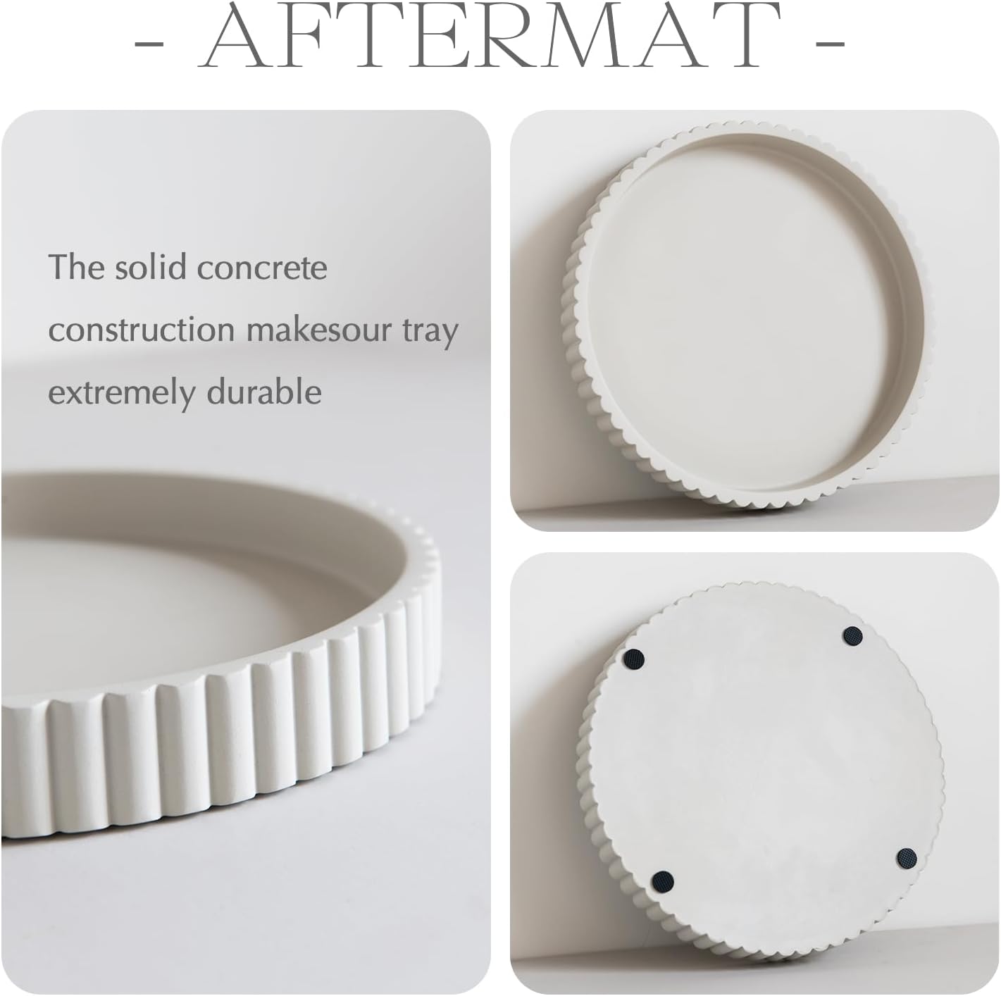 - Timeless Aesthetic: Inspired by clean Scandinavian design elements, it's a neat little solution to keep everything in check. The grooved concrete bestows upon the AFTERMAT tray a sense of modern elegance, harmonizing exquisitely with understated home dรฉcors.