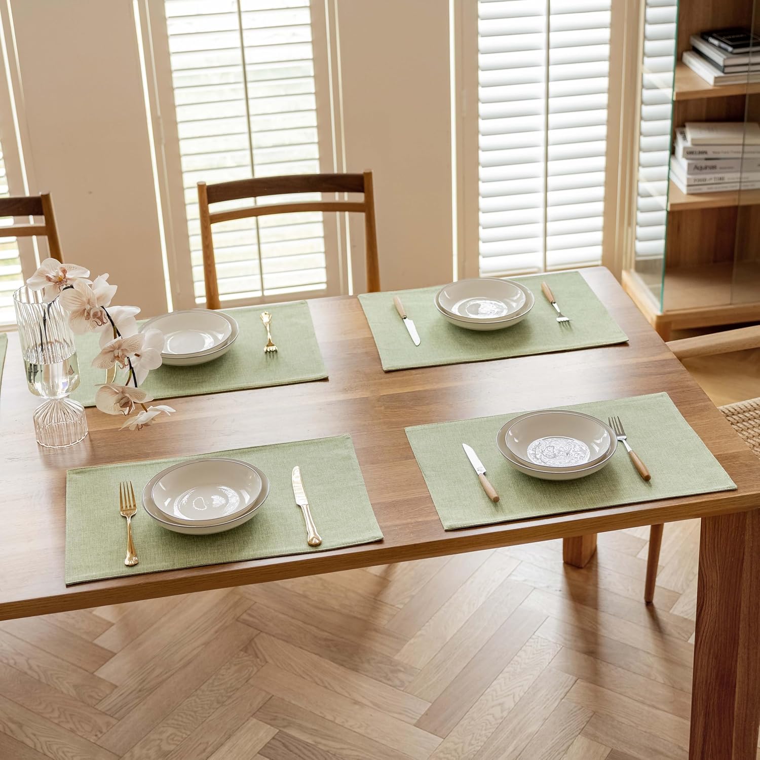 Demetex Cloth Green Placemats Set of 8 Heat Resistant Table Plate Mat Washable Linen Placemat for Kitchen Dining Tables, 13x19 inch, Grass Green