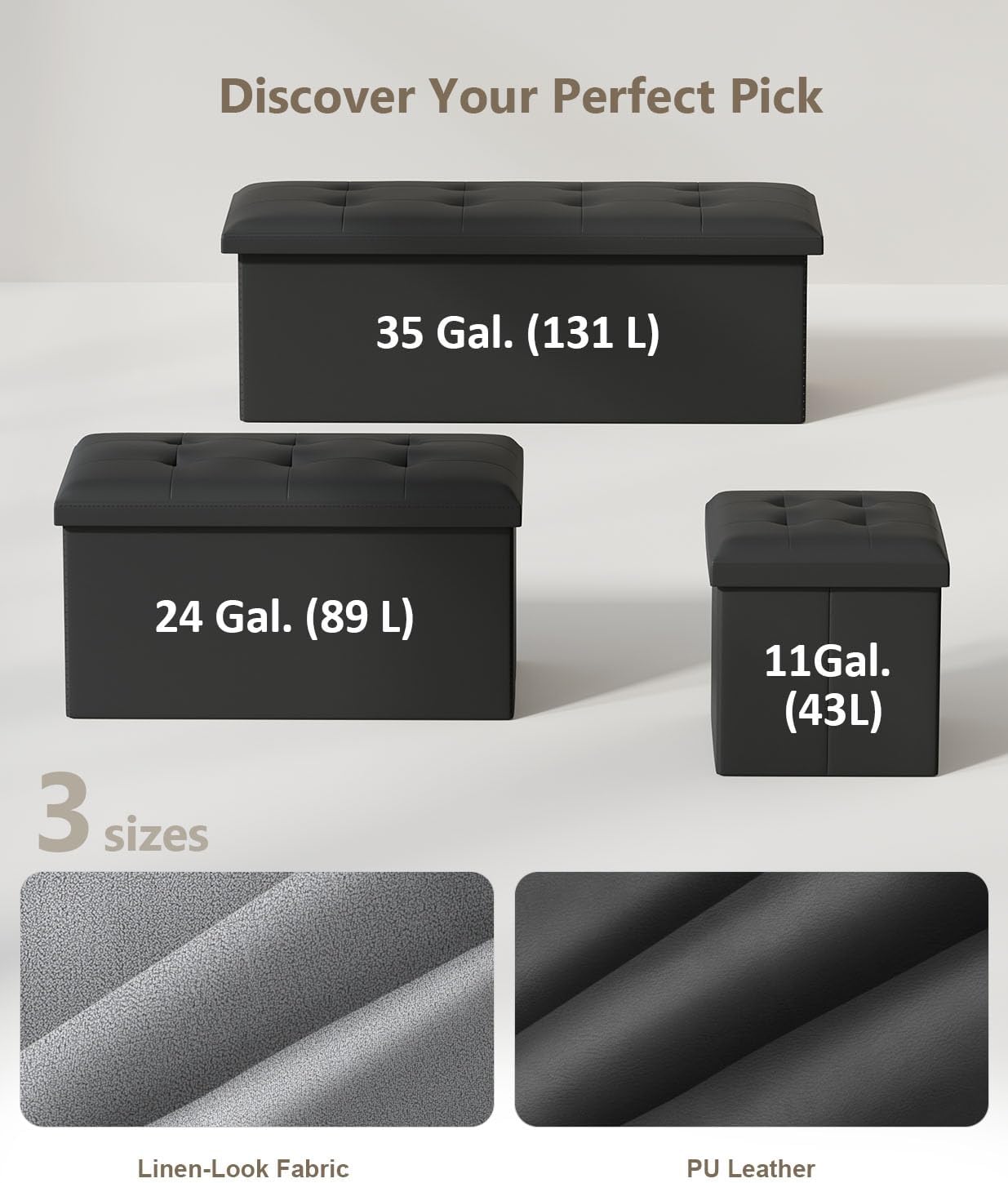 - [Plenty of Storage Space] This folding ottoman Foot Rest, sized 15”D x 43"W x 15”H (38 x 110 x 38 cm) with a total capacity of 35 gallons, can be used to neatly organize your bed sheets, pillows, blankets, magazines,and more