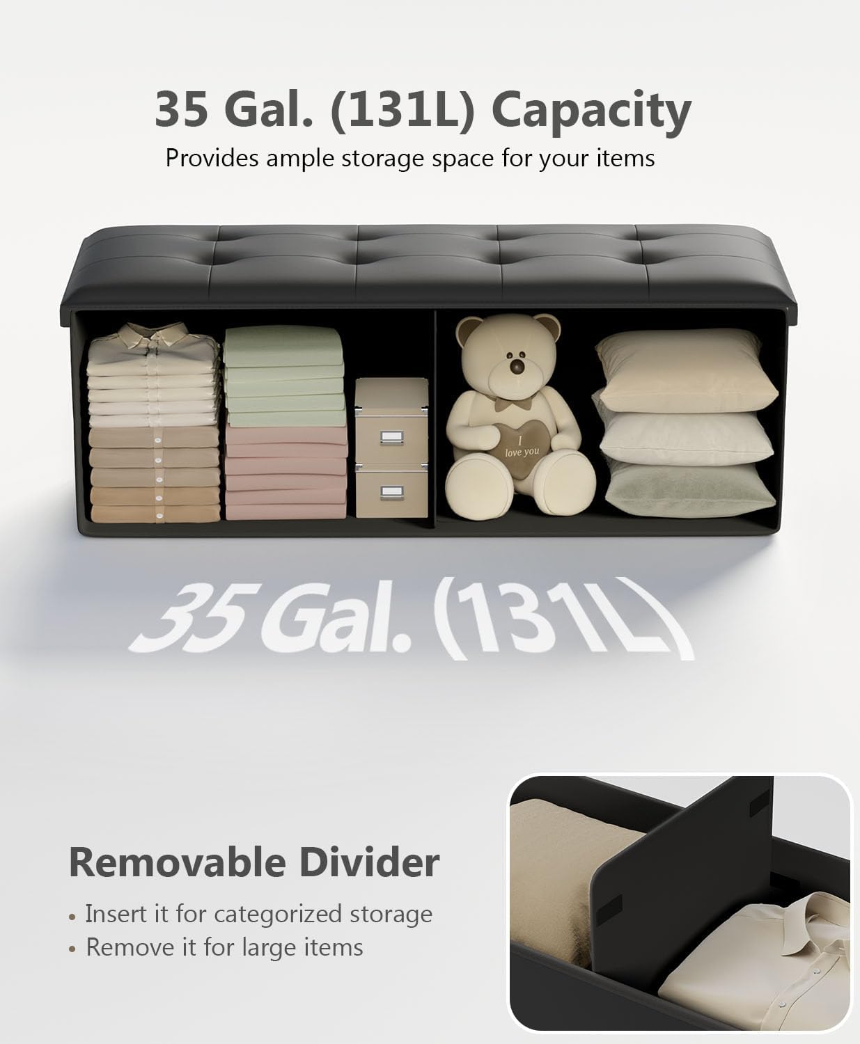 - [Comfortable Seating] Filled with high-density foam and covered in PU, this storage bench provides a soft, supportive, and breathable seat for optimal comfort