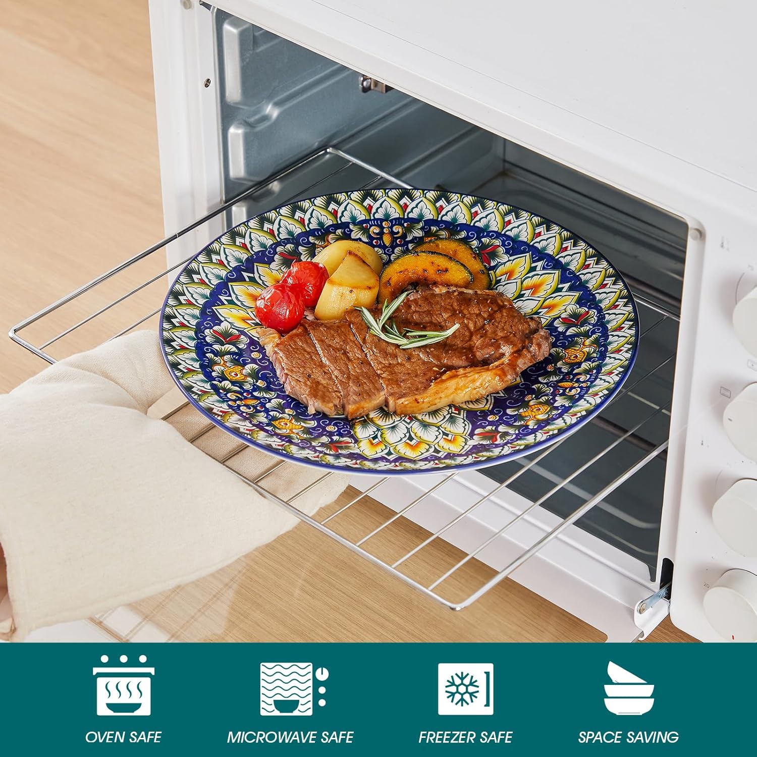 - 【Vibrant and Colorful Designs】vancasso bohemian style dishes set for 6 boast enchanting and intricate designs that capture the free-spirited essence of Bohemian culture. The lively colors and artistic patterns evoke a sense of joy and positivity, enhancing your dining experience with a burst of energy and happiness.