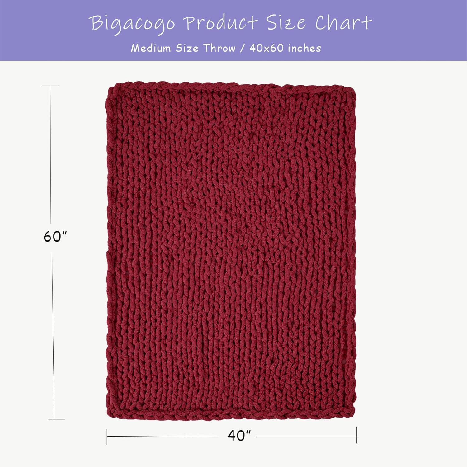 Bigacogo Chunky Knit Throw Blanket for Couch, 40x60 inches, 100% Hand Knitted with Thick Jumbo Chenille Yarn, Cozy Soft Large Rope Knot Cable Crochet Blankets for Sofa Bed Living Room, Red